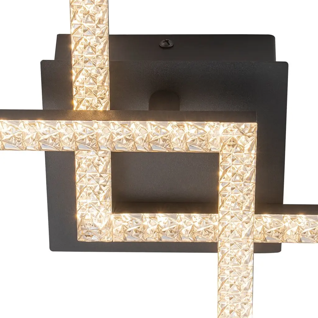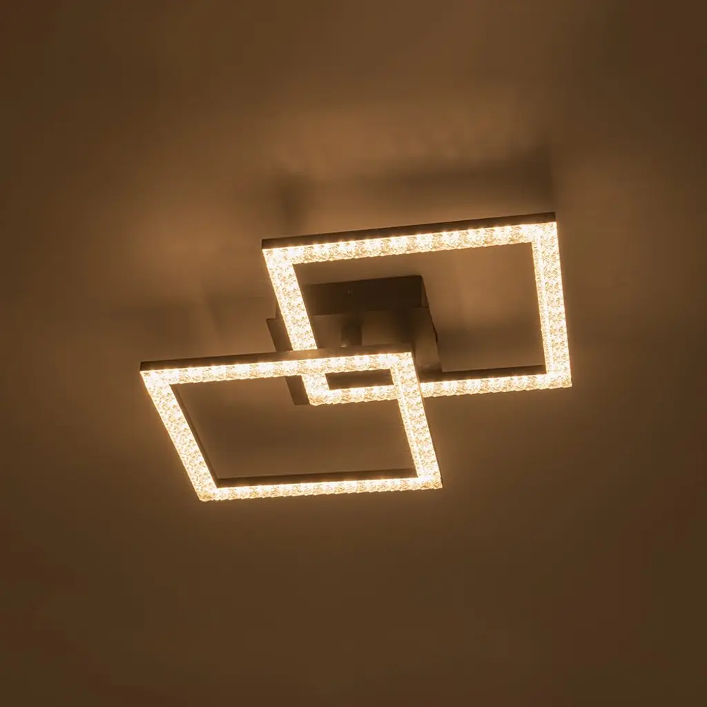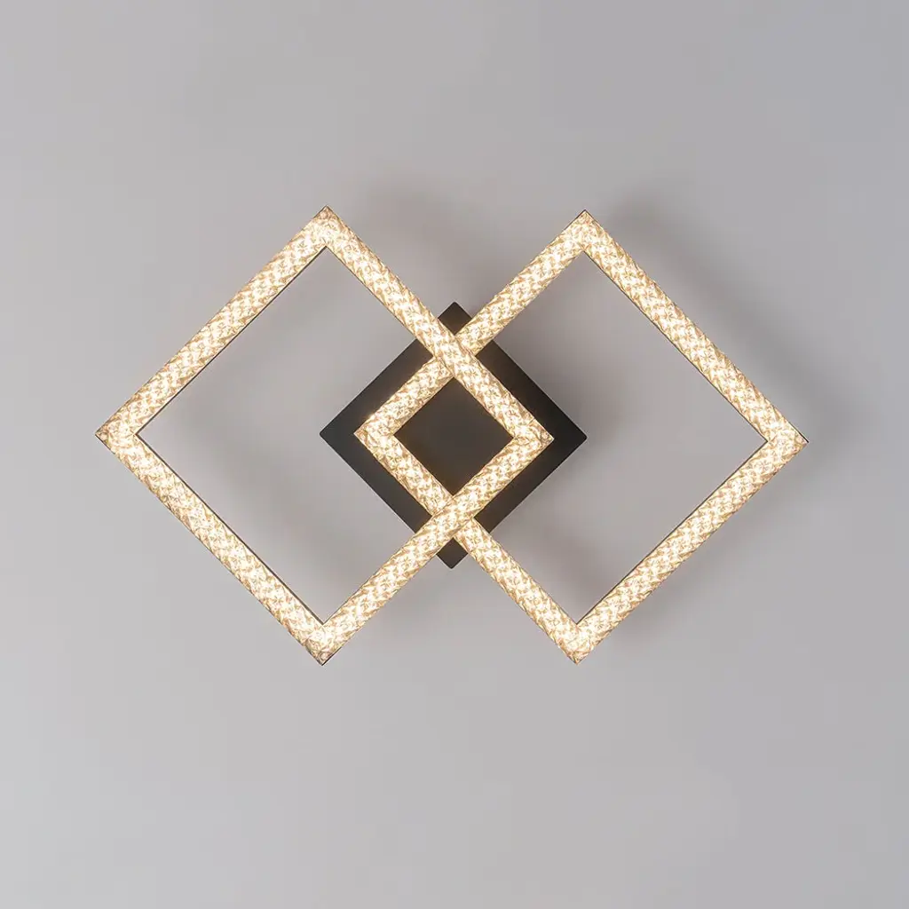 The modern 2-light rhombic integrated dimmable LED semi-flush mount transforms any space with its bold geometric form and radiant glow. Designed to captivate, its sleek rhombic silhouette exudes contemporary elegance, while the sparkling acrylic lampshades scatter light with a soft, shimmering effect. This versatile fixture offers dual functionality, effortlessly serving as both a ceiling light and a wall light, making it perfect for hallways, living rooms, bedrooms, or accent walls. The integrated dimmable LED allows you to adjust the ambiance, shifting from vibrant and bright to calm and inviting. A seamless blend of form and function, this fixture adds a touch of brilliance and architectural flair to modern interiors.Features:Dimensions: