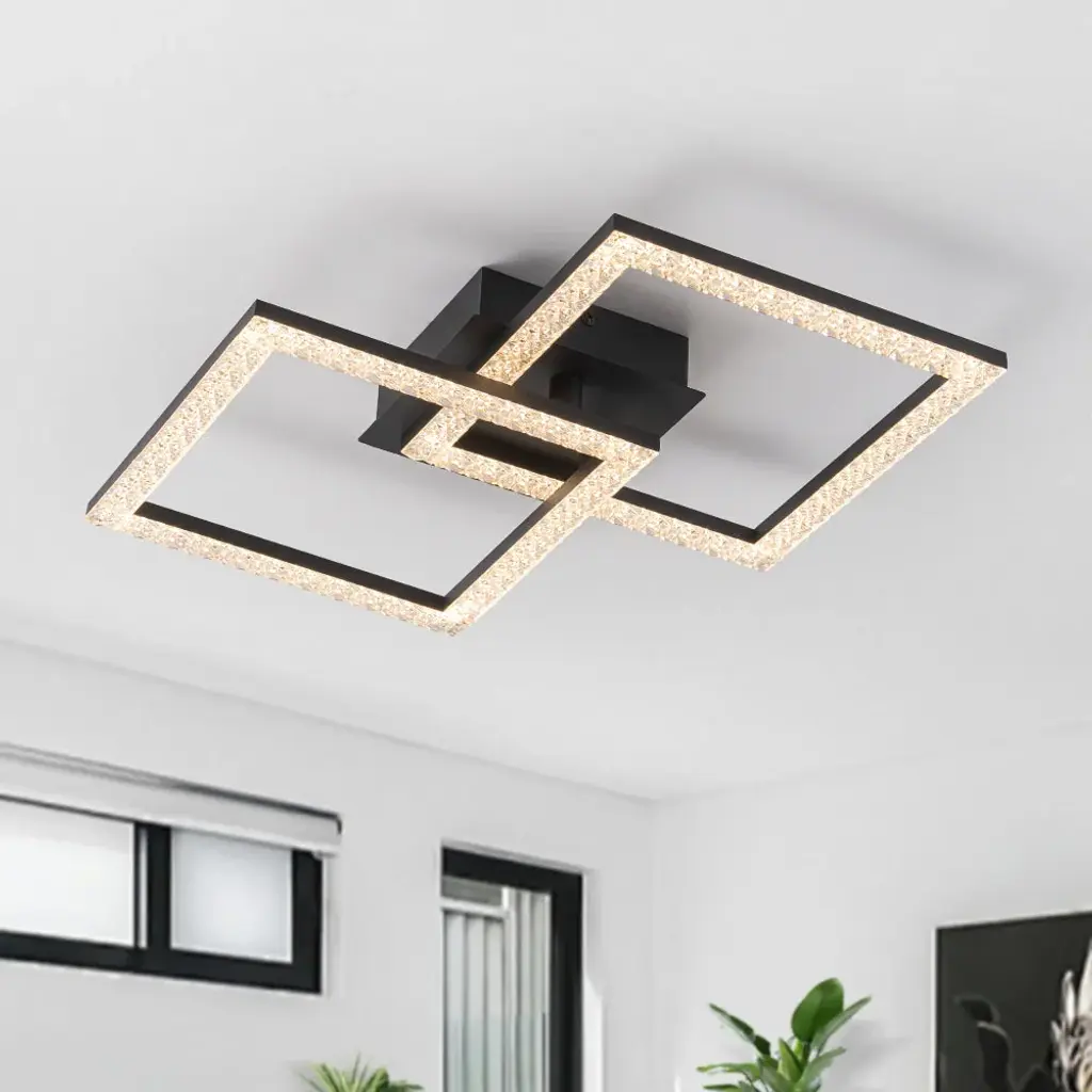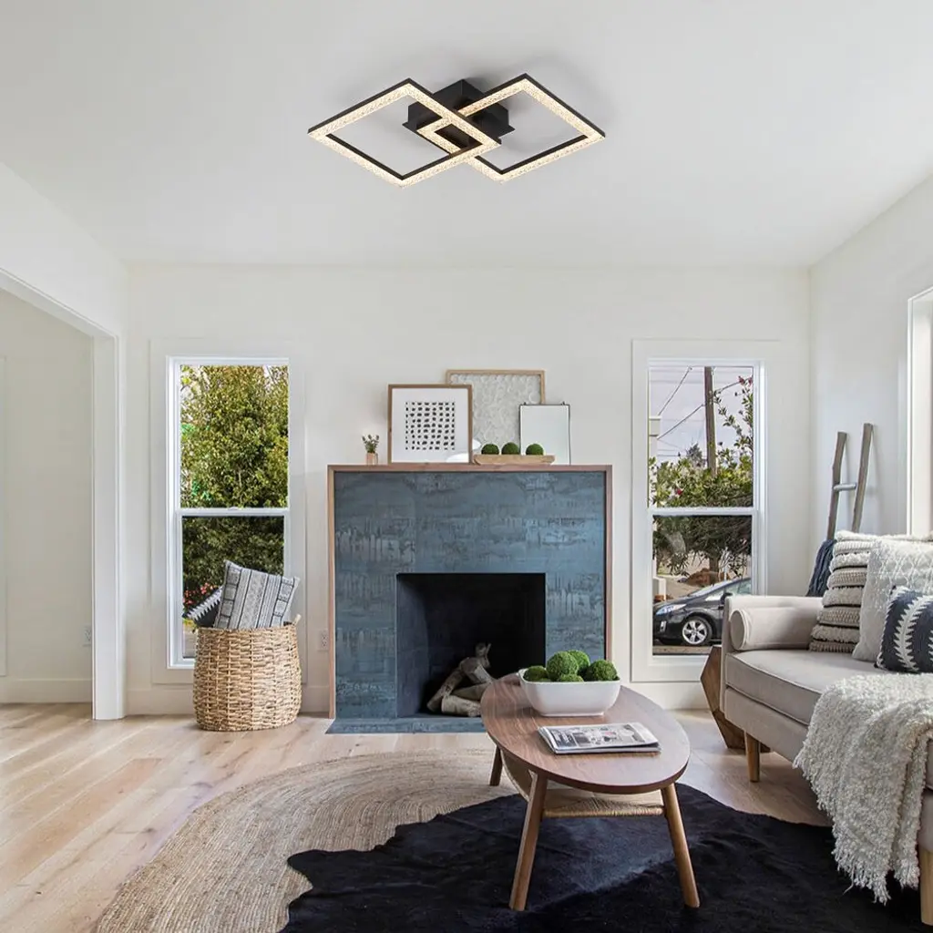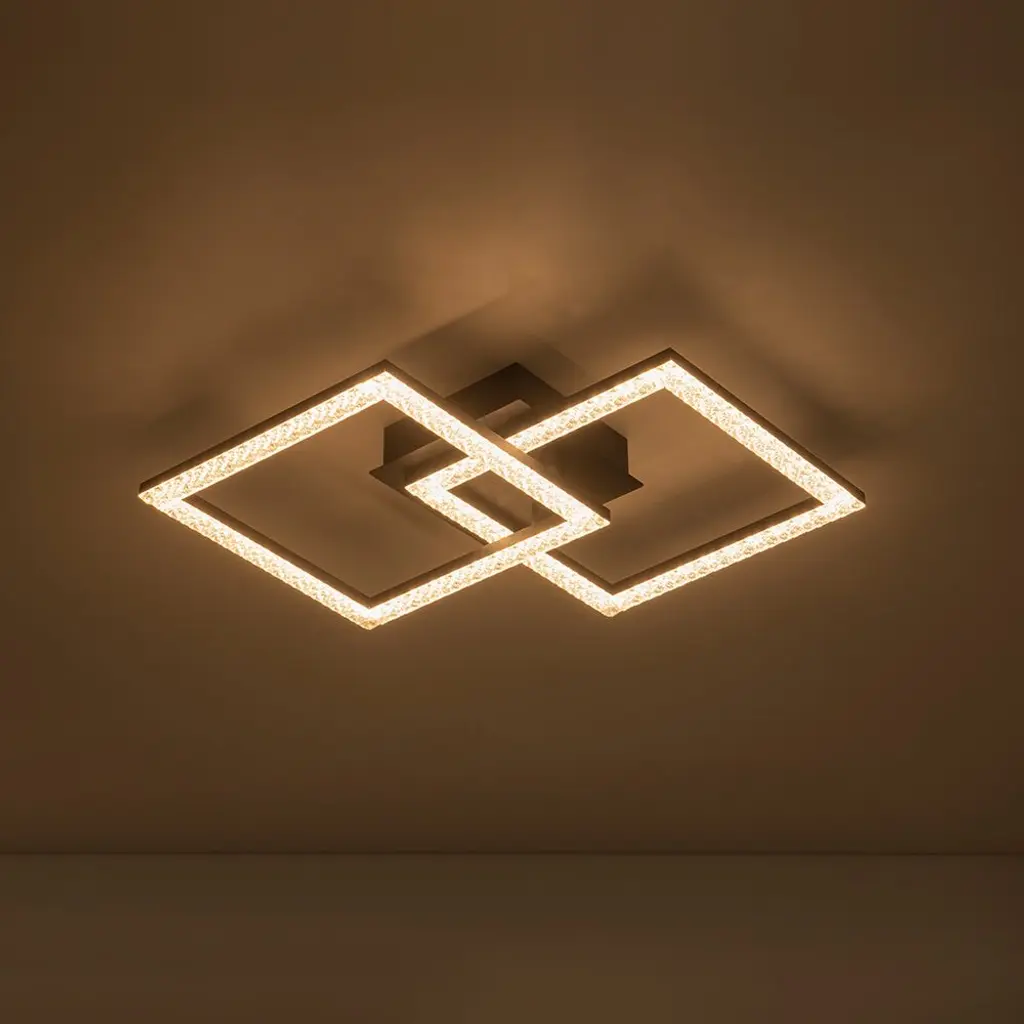 The modern 2-light rhombic integrated dimmable LED semi-flush mount transforms any space with its bold geometric form and radiant glow. Designed to captivate, its sleek rhombic silhouette exudes contemporary elegance, while the sparkling acrylic lampshades scatter light with a soft, shimmering effect. This versatile fixture offers dual functionality, effortlessly serving as both a ceiling light and a wall light, making it perfect for hallways, living rooms, bedrooms, or accent walls. The integrated dimmable LED allows you to adjust the ambiance, shifting from vibrant and bright to calm and inviting. A seamless blend of form and function, this fixture adds a touch of brilliance and architectural flair to modern interiors.Features:Dimensions: