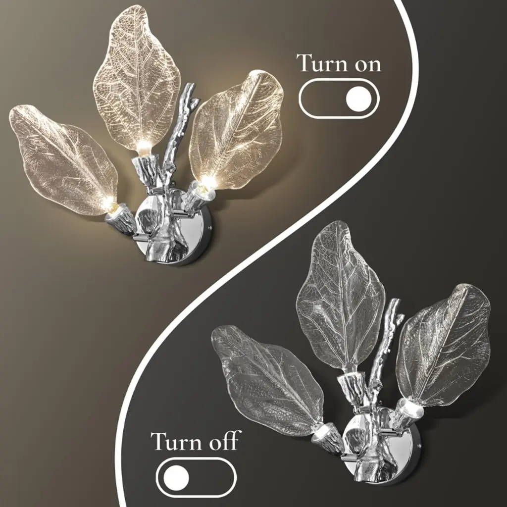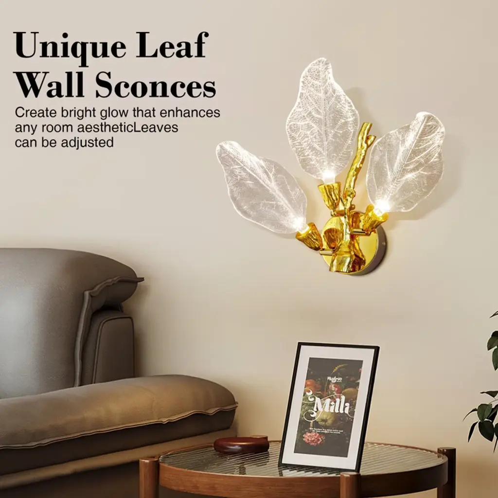 The modern bionic leaf wall sconce has a sophisticated and unique look with a warm and soft light. Made of high-quality resin material and metal base, durable, rustproof and won't fade, the wall sconces have good transmittance and good refractive index, resulting in a soft and gentle light effect. High-quality bionic leaf wall light that shine with true clarity will effectively capture and reflect light, the spectrum provides you with brilliant color effects. Aesthetically pleasing lampshade, the shape of the lampshade has graceful curves, beautiful contours make the lampshade shape vivid and natural, adding artistic beauty and decorative value. Suitable for different places such as bedroom, living room, dining room, corridor, stairs, bathroom, dresser, office and so on. These wall sconces not only maximize the use of light, but also infuse your room with a charming and stylish atmosphere.