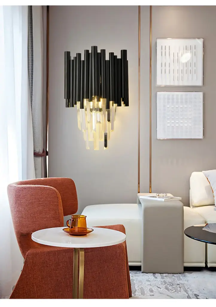 Modern Black wall decor for luxury living room from MIRODEMI will perfectly fit into your interior and, thanks to modern and high-quality materials, will serve for many years.Product parameters:Item Style: ModernMaterial: Metal, CrystalSize: Width 9.8'''', Height 15.4'''' Weight about 11 poundsLight Source: E14 LED BulbsColor Temperature: Warm light 3000K (for order Cool light 6000K, please contact us)Wattage: Non-dimmable (for order Dimmable, please contact us)Voltage: AC110-240VApply: Living Room, Dining Room, BedroomReminder! Save products as favorites and put them in your shopping cart so as not to lose them.Our advantages:- Top-quality- Unique products, production of non-standard models- Perfect balance of price-quality-warranty- 24/7 customer service- Flexible custom production of any size/color- Constant updating of the assortment- Free Express delivery, easy returns.MIRODEMI is the premier retailer of modern and contemporary lighting, which will ensure the uniqueness of any interior by providing a combination of stylish shape and innovative technology. We will be glad to cooperate with Interior Designers, Builders, Architects in the field of realizing the exclusive fabulous projects.Go to our store page at HOUZZ.com by clicking on Mirodemi under the product name on the right side to see all the latest collections of modern chandeliers, wall sconces, pendant lights for any budget and space of your sweet home: kitchen, dining room, living room, bedroom, bathroom, staircase, loft, hall, foyer. Become a follower not to miss new items and don''t forget to save your favorite products to idea books in order not to lose them. Happy shopping with HOUZZ and MIRODEMI.