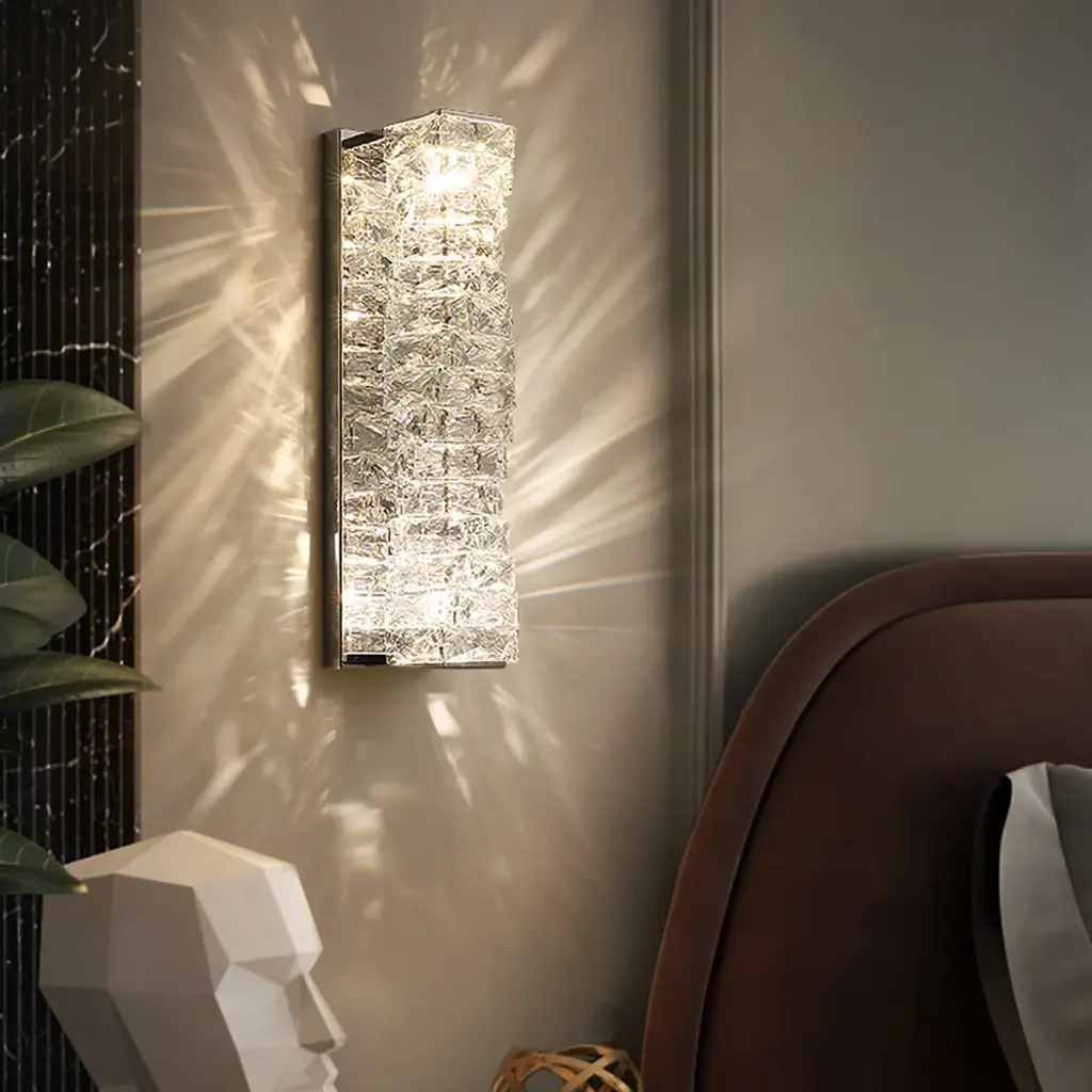 Modern Chrome Crystal Clear Led Wall Sconces Silver Bedside Wall Lamp With Warm Light