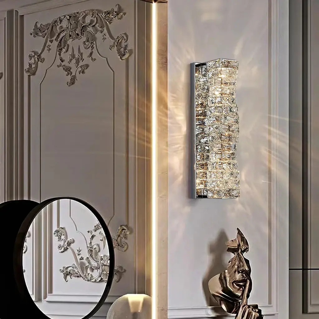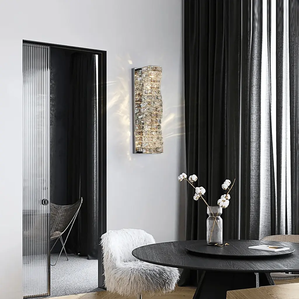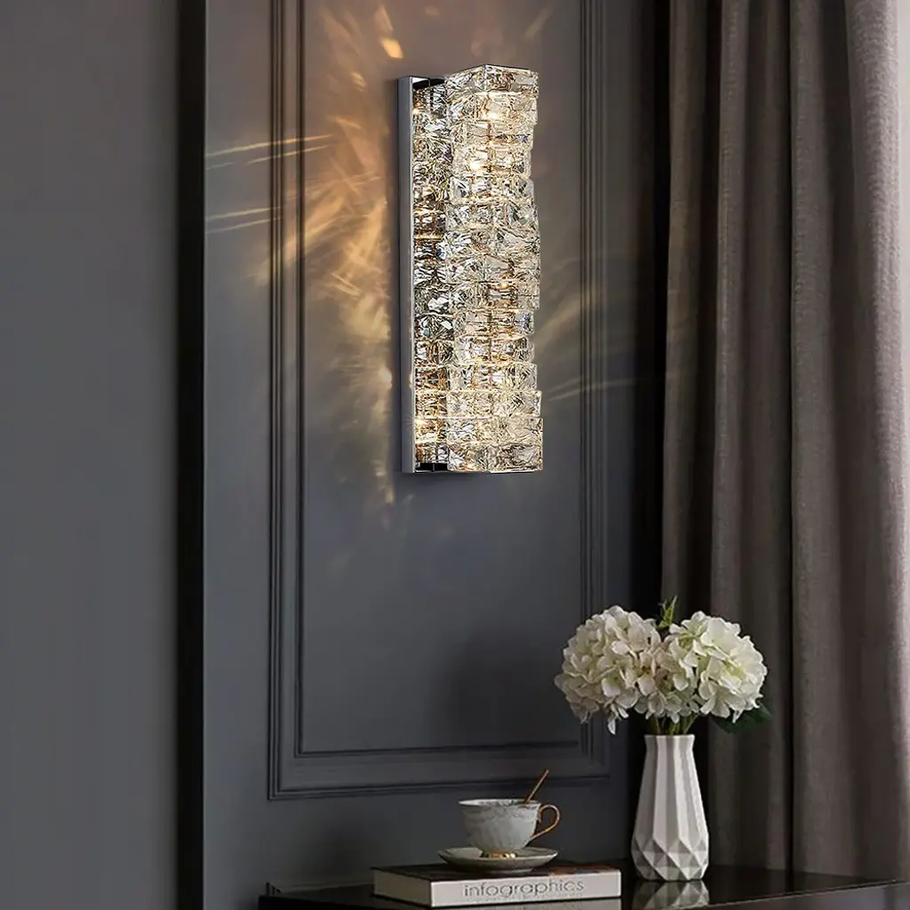 【LED Wall Light】The crystal wall light is a charming piece that is sure to add elegance and sophistication to your room decor. The wall light not only illuminates your space, but also serves as a charming silver wall light wall decoration in your home, elevating any room to a luxurious and charming world. You and your family will definitely be mesmerized by this crystal lamp. 【Sparkling K9 Crystal Wall Light】The elegant K9 crystal wall light, with a shiny stainless steel chrome finish and finely cut irregular crystals, ensures that its sparkle can be appreciated from any angle. It emits a very beautiful glow when illuminated, and when the sun shines on it, you will see a lot of beautiful light reflections. 【Easy to Install】This chrome polished wall-mounted light fixture is easy to install, comes with its own LED warm light source, and contains all mounting hardware for quick and easy installation. Once completed, the wall light will maximize the use of light and add a charming and stylish touch to your room.