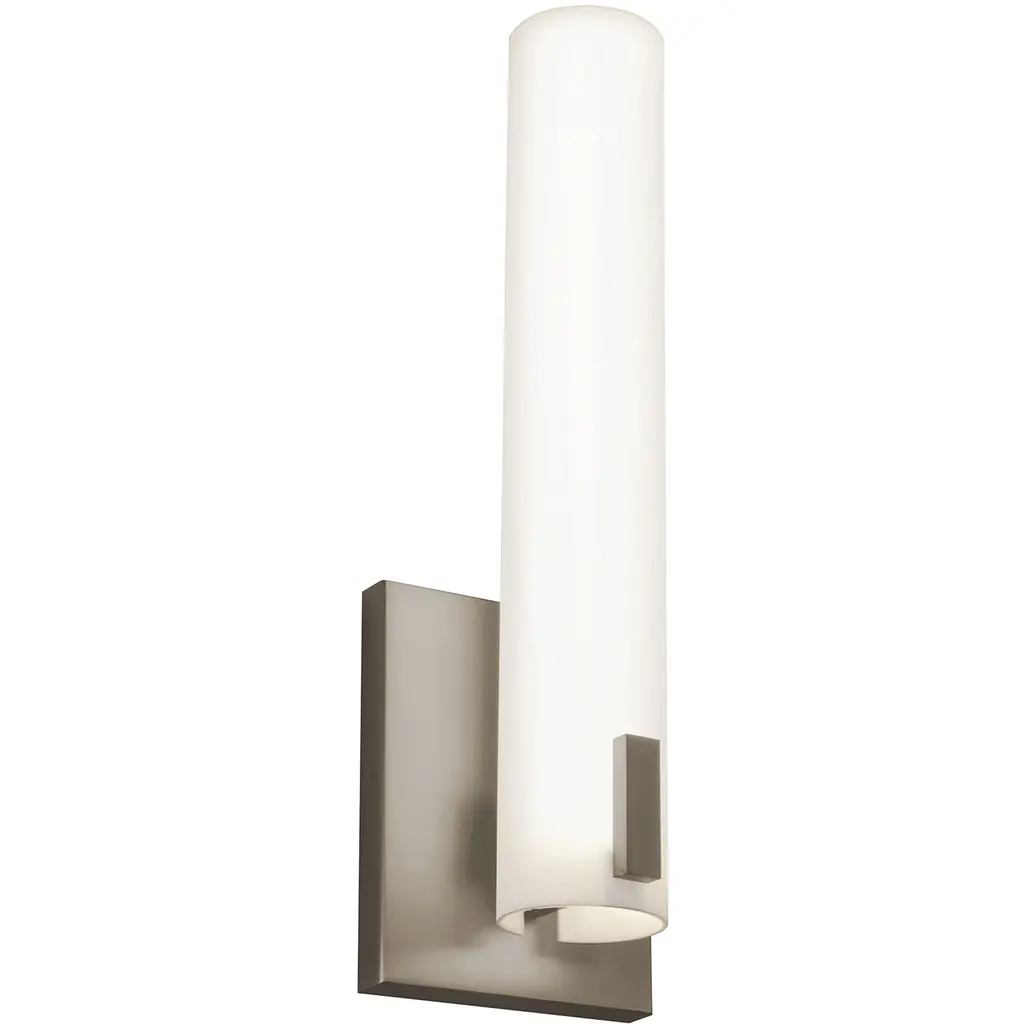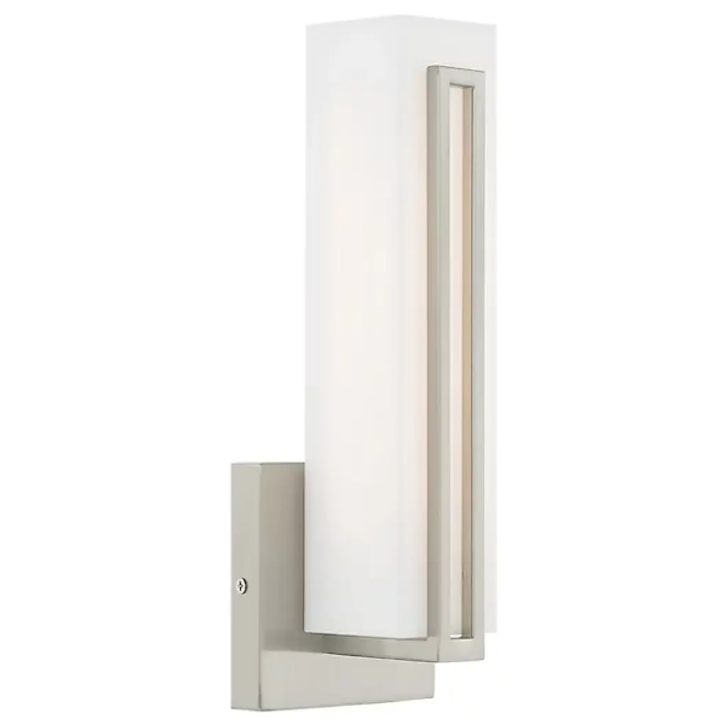 From transitional to contemporary, the Vogue family coordinates with popular bath hardware and metal finishes, An extensive range of LED wall luminaires are available for every application and environment. Crafted of mouth blown etched opal glass and designed with hidden hardware, these luminaires offer powerful lumen output and excellent color rendering.Features:- Aluminum with mouth blown etched opal glass.- CEC Title 24 compliant, and low profile ADA compliant.- Smooth and continuous dimming with an electronic low voltage (ELV) dimmer.- Driver located inside outlet box.- Replaceable High Powered LED Module CRI: 90, 80,000 hour rated life, Color Temp: 3000K.- Standards: ETL & cETL Damp location listed.Bulb Type: LEDBulb Base: LED ModuleNumber of Bulbs: 1Watts per Bulb: 16Total Wattage: 16Bulbs Included: YesDimmable: YesBackplate/Canopy DimensionsHeight: 5"Width: 4.63"Depth: 0.63"Shade DimensionsHeight: 9.5"Length: 2.5"Width: 2.5"Light assembly required on finials, back plates, and shades.