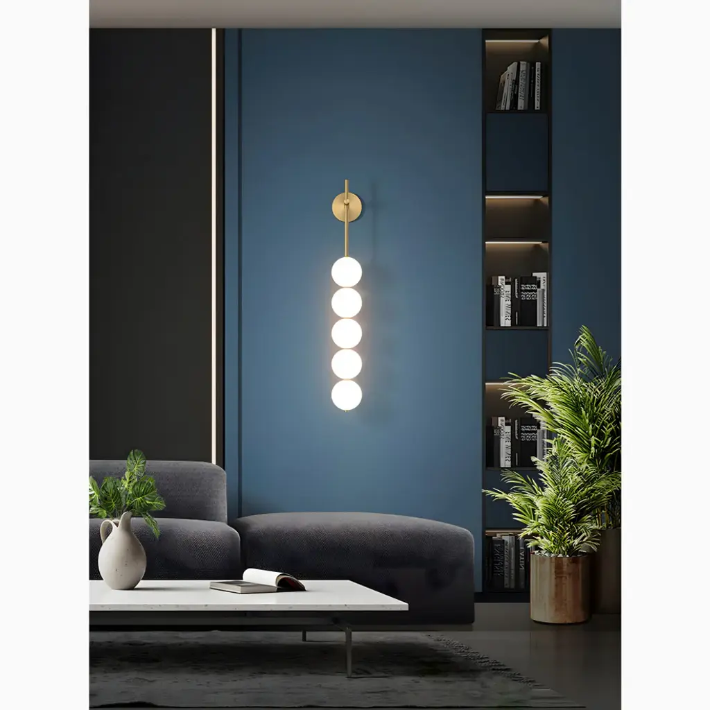 Modern Golden Wall Lamp With Light Spheres For Living Room, Bedroom, Glass, Cool Light
