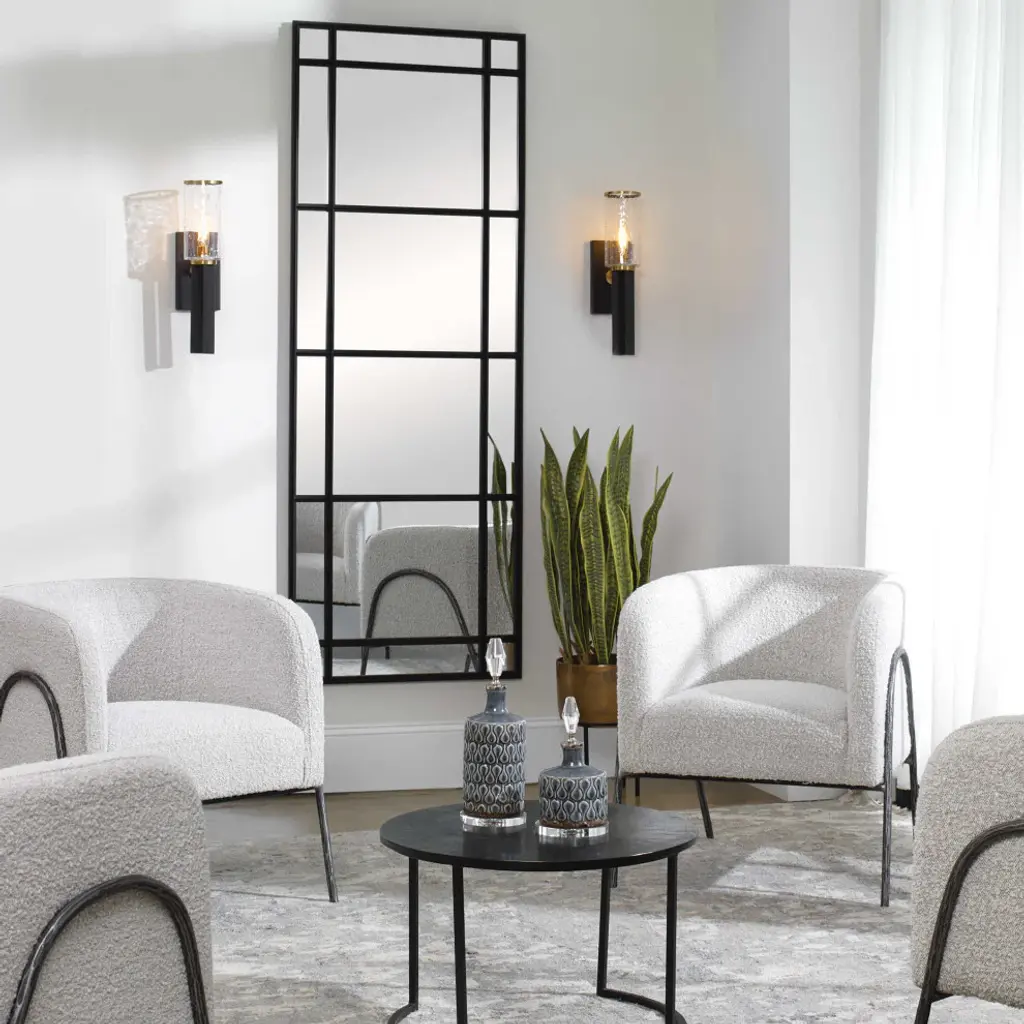 Modern Industrial Black I Beam 1 Light Wall Sconce, Geometric Glass Hurricane