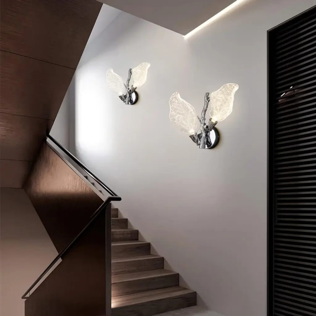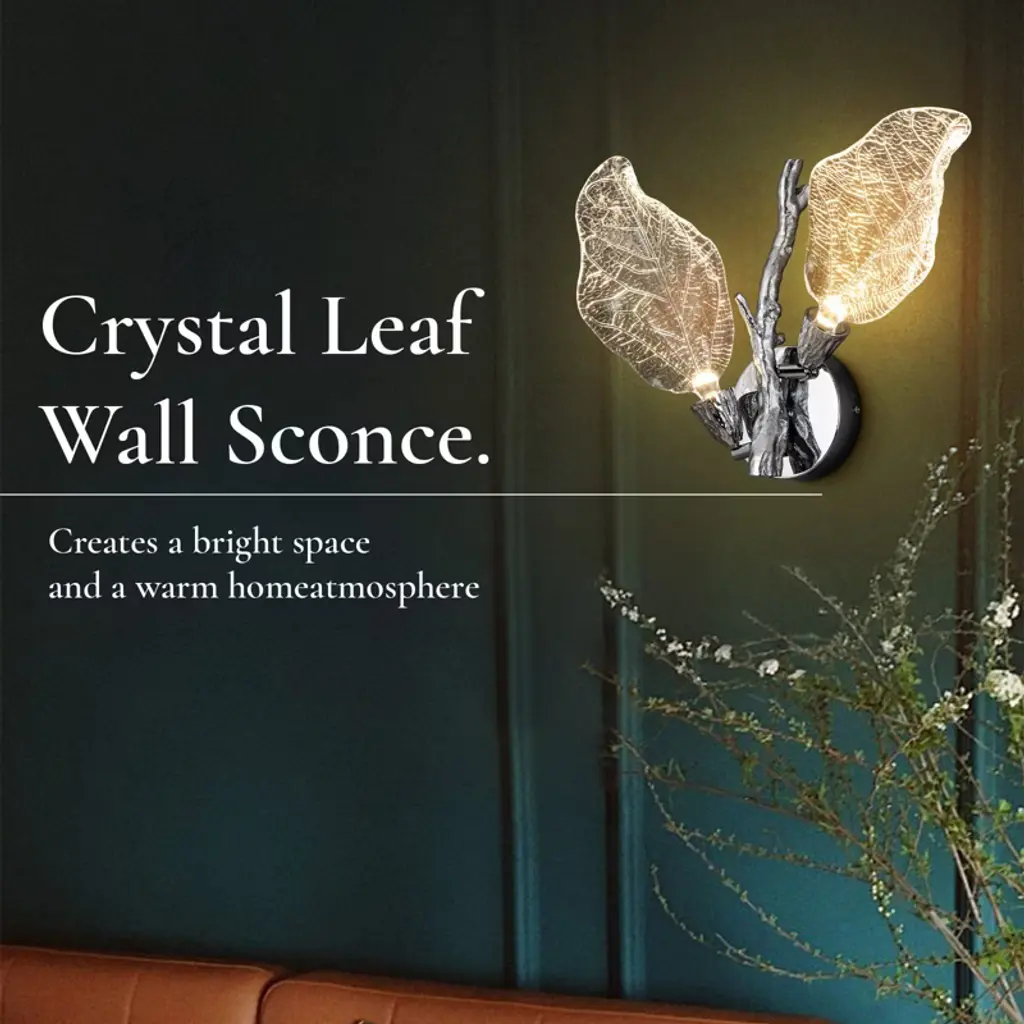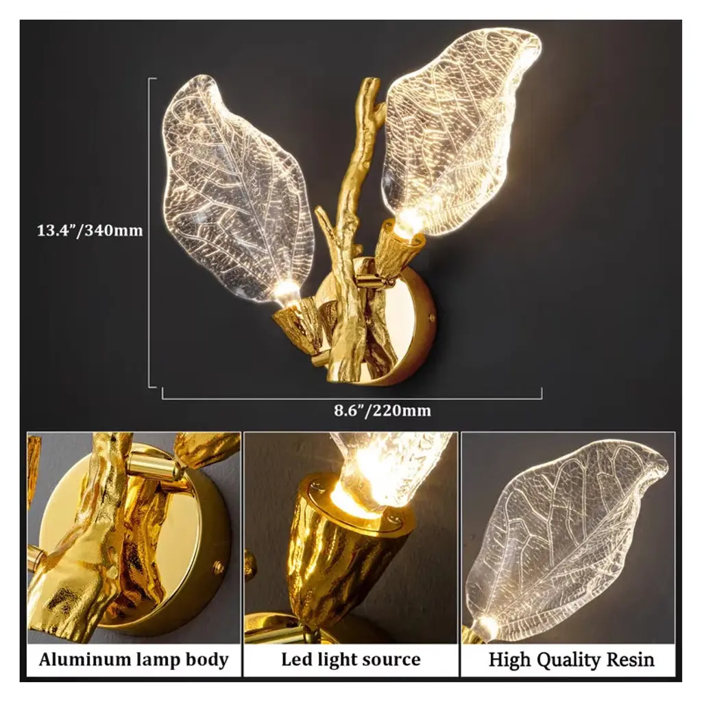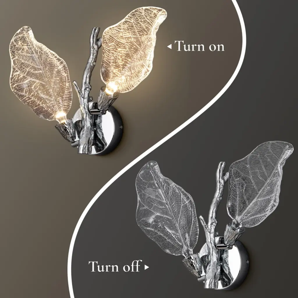 The Bionic Leaf Wall Lamp features an integrated LED light source, which is energy-saving and environmentally friendly with a long lifespan. The resin leaf part can be flipped to adjust the angle of illumination, making it more humanized and unparalleled, satisfying your various needs of decoration and illumination. Made from high-end resin material, this wall lamp has bionic leaf textures that highlight luxury texture and showcase unique design, bringing you a fresh feel from nature. Two leaves reflect each other's radiance, providing a soft lighting, resembling a butterfly dancing in the night, lovely and romantic.