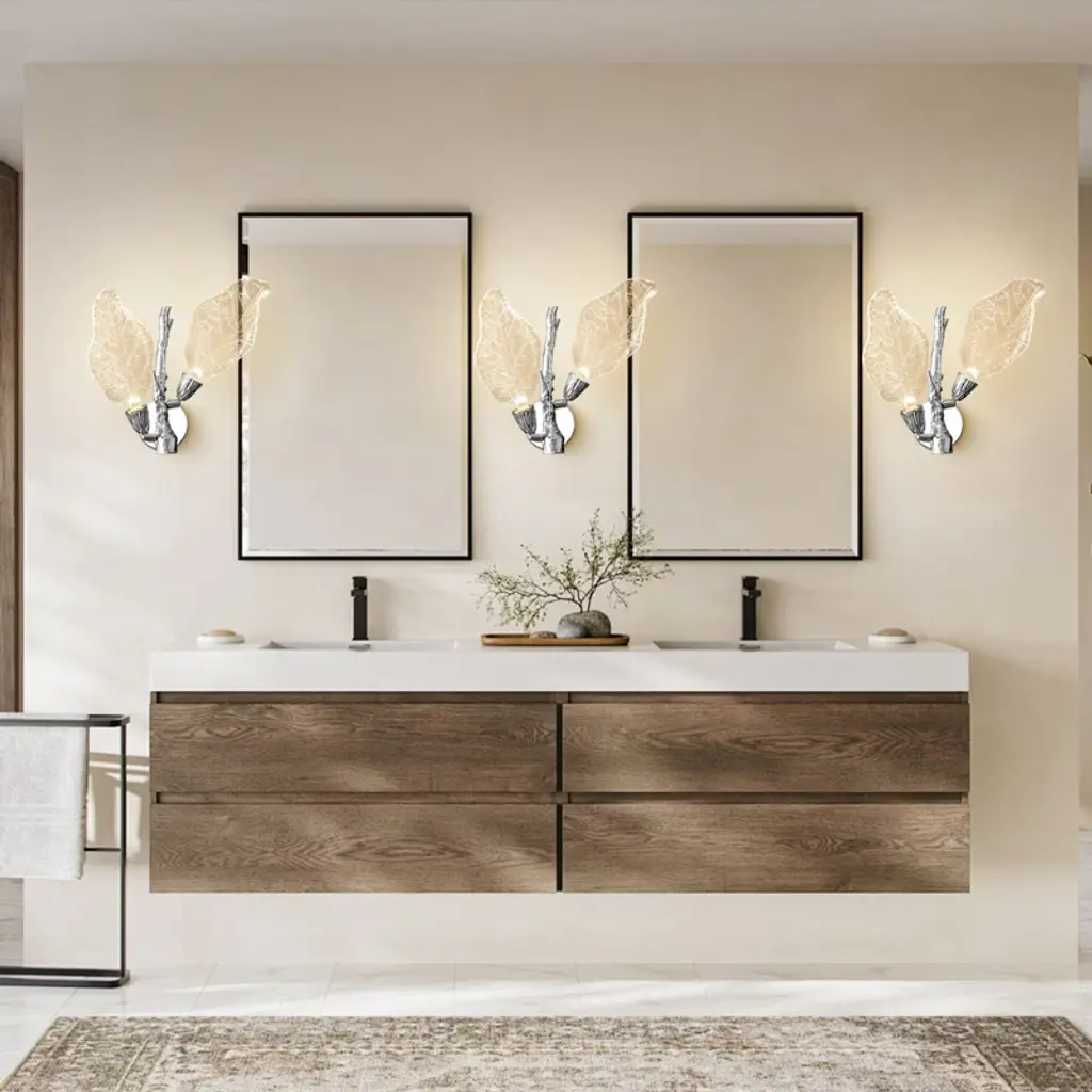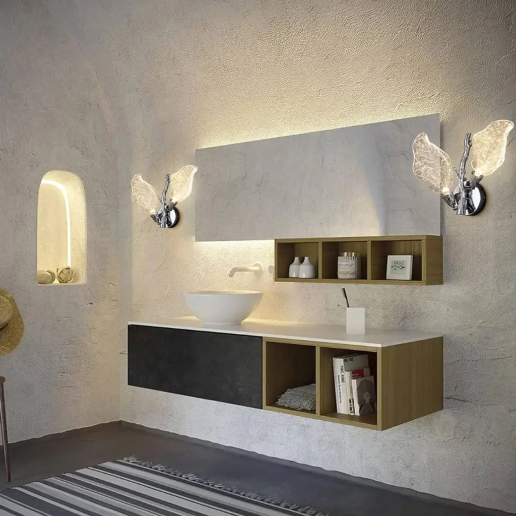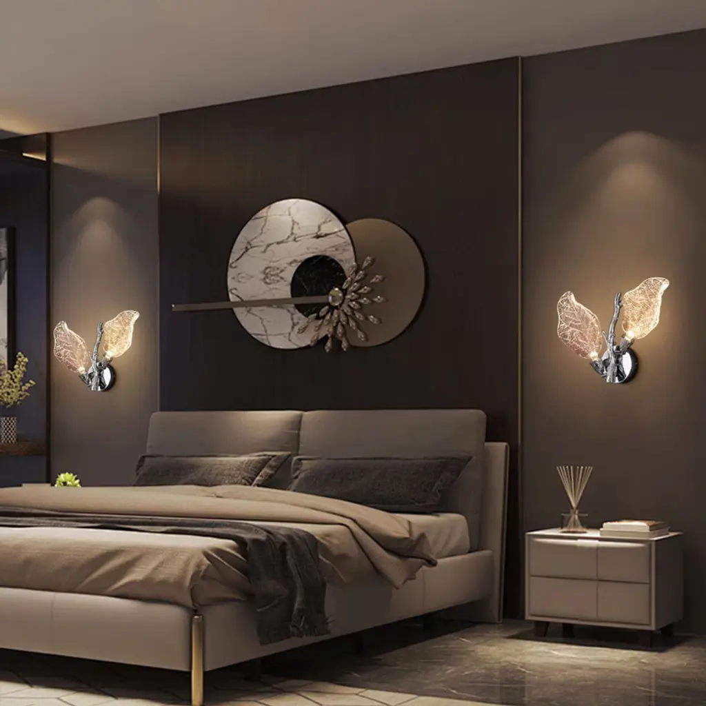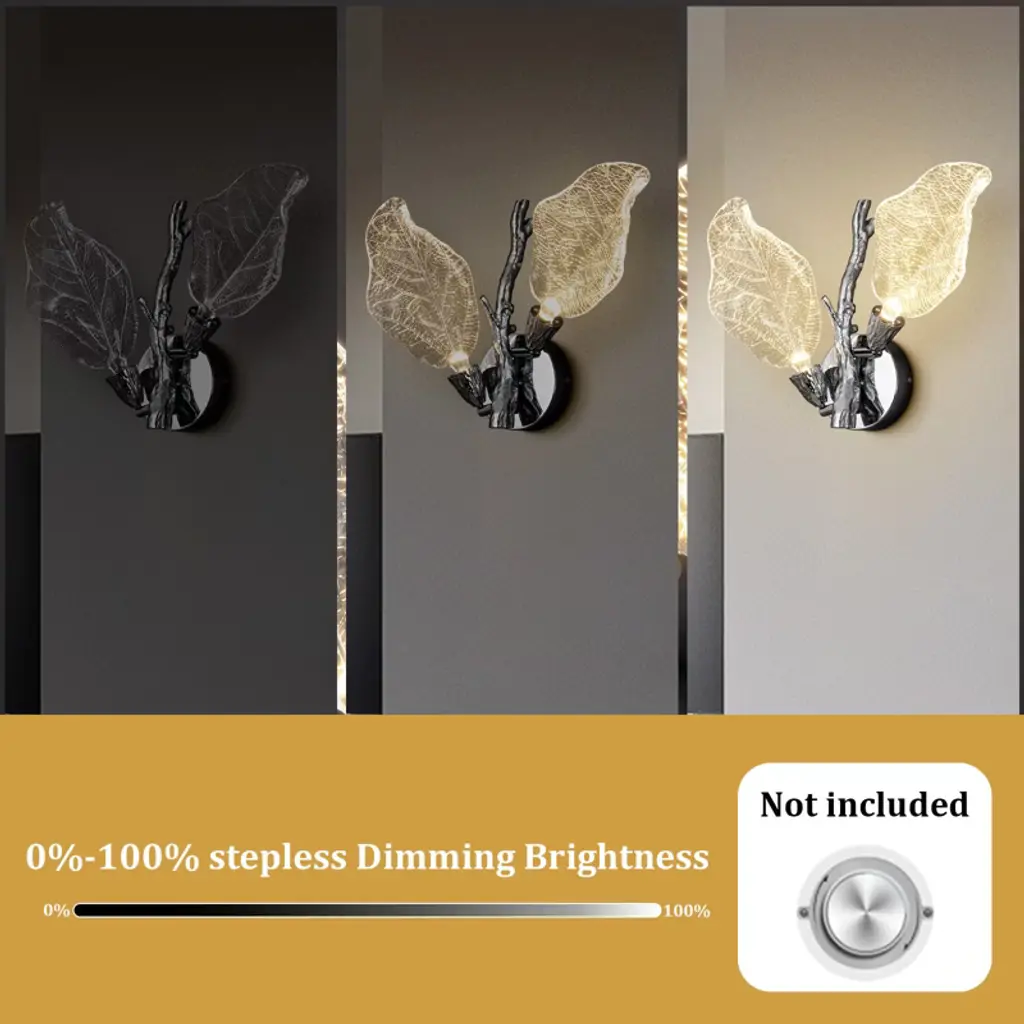 The Bionic Leaf Wall Lamp features an integrated LED light source, which is energy-saving and environmentally friendly with a long lifespan. The resin leaf part can be flipped to adjust the angle of illumination, making it more humanized and unparalleled, satisfying your various needs of decoration and illumination. Made from high-end resin material, this wall lamp has bionic leaf textures that highlight luxury texture and showcase unique design, bringing you a fresh feel from nature. Two leaves reflect each other's radiance, providing a soft lighting, resembling a butterfly dancing in the night, lovely and romantic.