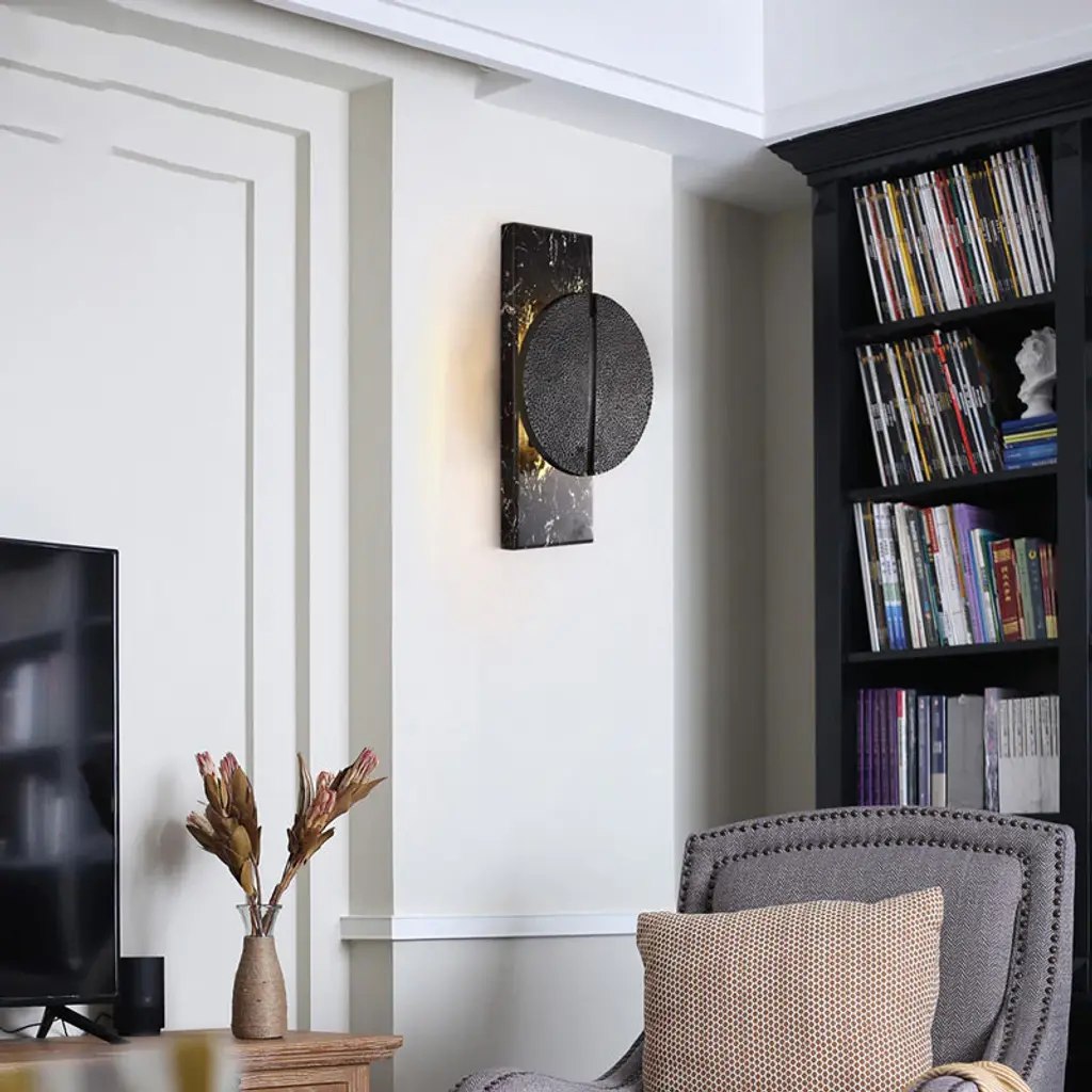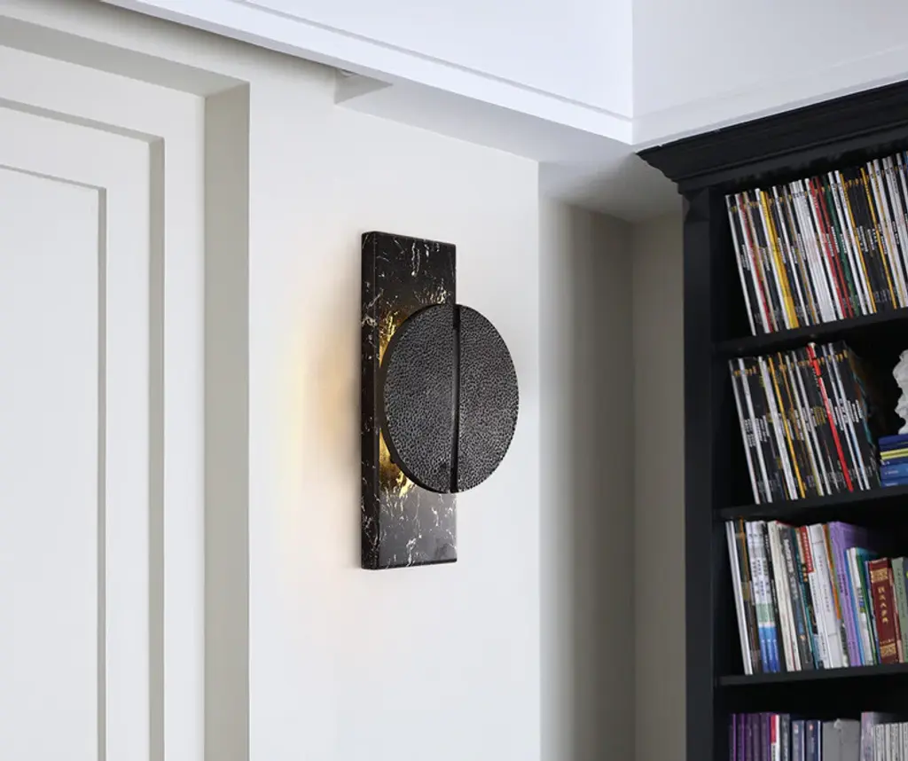Modern Marble Wall Lamp In Designer Style For Living Room, Bedroom, Black, Warm Light