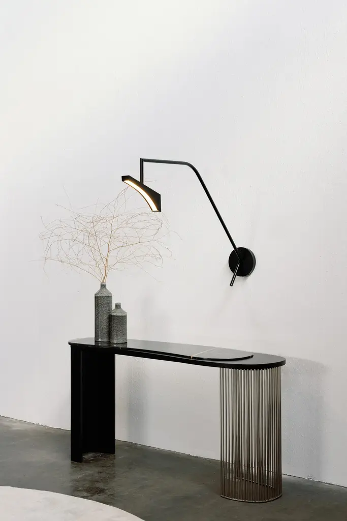 Opposite Sconce, Contemporary Collection, Handcrafted in Portugal - Europe by Greenapple.The Opposite sconce brings the creative vision to life through its meticulous black design, elevating the atmosphere of the modern home. Designed to stand out in its surroundings, the Opposite sconce creates a subtle ambience with its bold appearance.Opposite Sconce Material CodesFI007 Black lacquer; satin finishEL001 LED light stripHandcrafted in Portugal - Europe by GreenappleUnique by design, Crafted by peopleFounded in 2005 by Sérgio Rebola and Rute Martins, Greenapple designs and produces in-house luxury furniture for exclusive customers worldwide.Our own in-house production facility allows us to be obsessed with detail, and gives us the freedom to dedicate ourselves to the most demanding tailor-made and customised work. As Rute designs all the unique pieces, Sérgio assures the high-quality standards through the whole process - from design to production; from production to your home. Fine craftsmanship, whether perfected by experienced hands or state-of-the-art machinery is quintessential in delivering top quality experiences.