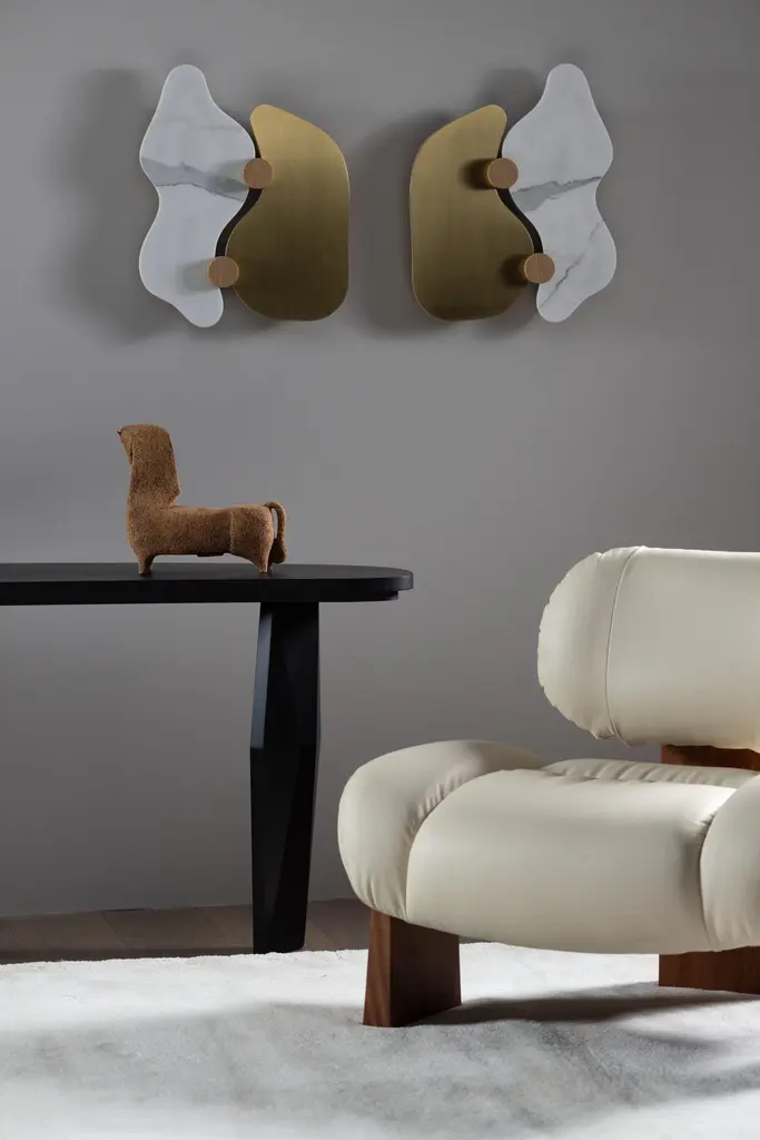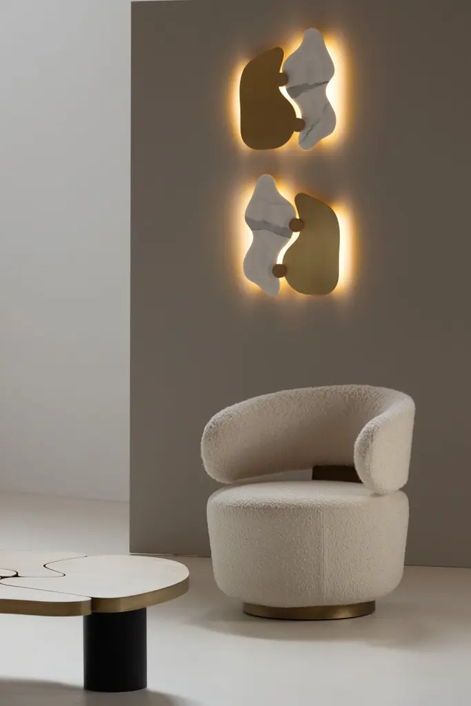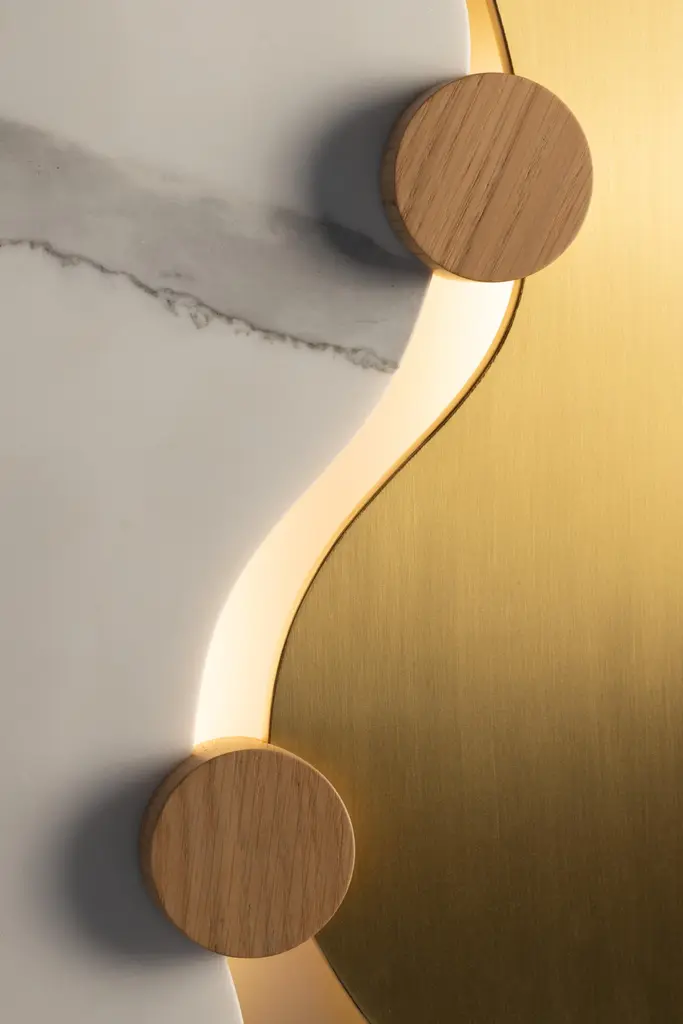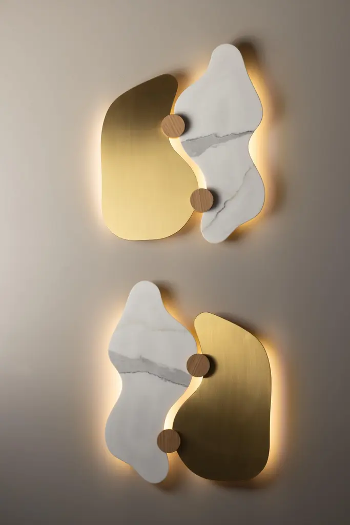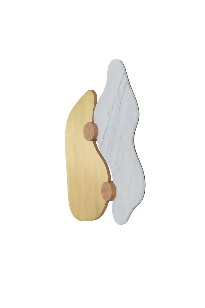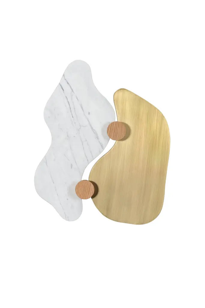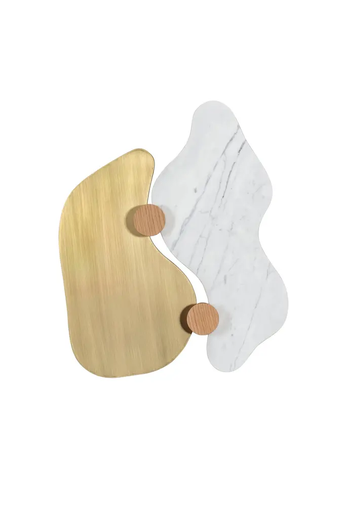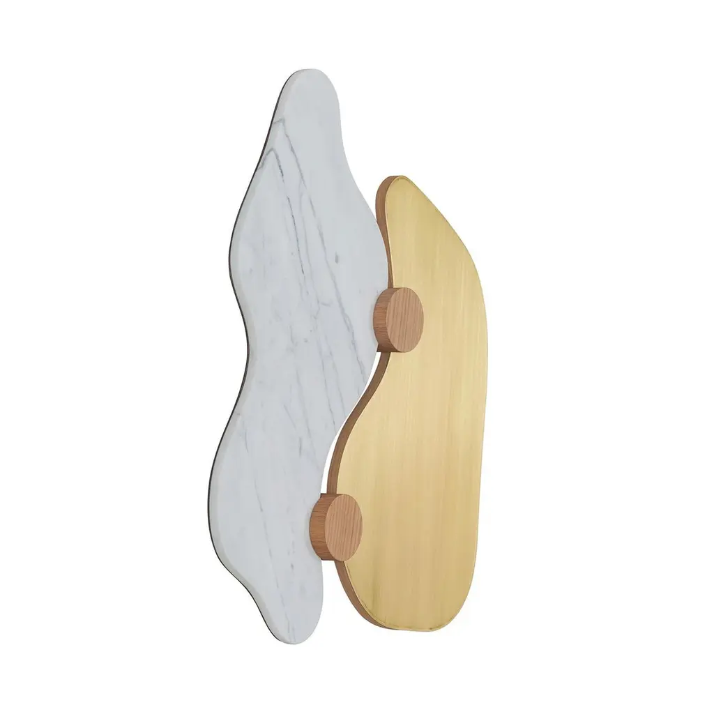 Modern Rossim Set of 2 Wall Art Pieces, Contemporary Collection, Handcrafted in Portugal - Europe by Greenapple.The Rossim marble sconce is inspired by the serene beauty of the Rossim Valley in Serra da Estrela. Its organic silhouette, sculpted from lush marble and brass, echoes the fluid curves of the valley’s river beach. A seamless fusion of natural elegance and modern artistry, the Rossim marble sconce enriches any space with its flowing, sculptural form.The Rossim art piece is a harmonious fusion of natural stone, metal and wood, brought together in an elegant composition. One element is crafted from honed Statuario marble, showcasing its signature in white and grey tones. The second element is made from brushed brass with a high-gloss varnish. These two distinct materials are seamlessly connected by two structural pieces in solid natural white American oak with open-pore and matte varnish. Indirect LED lighting softly illuminates the piece.The Rossim art piece can be customized in terms of dimensions, materials and finishes.Rossim Decorative Wall Art Piece Material CodesWD027 American Oak, Stained Open-pore, Varnished, Natural White Oak, MatteST047 Statuario Marble, Honed, White-Grey, MatteME006 Brass, Brushed, Varnished, Brushed-Brass, High-GlossEL009 Indirect LED lightingHandcrafted in Portugal - Europe by GreenappleUnique by design, Crafted by peopleGreenapple transforms contemporary spaces into exclusive narratives of design and craftsmanship. From custom-made furniture to bespoke interiors, each creation is a timeless work of art, shaped by master artisans who honor centuries-old techniques.Founded in 2005 by Sérgio Rebola and Rute Martins, Greenapple has earned global recognition among high-end clientele and leading design firms. While Rute designs each unique piece, Sérgio ensures uncompromising quality from design to production and from production to your home. We provide a seamless experience, offering short production lead times, worldwide delivery within 7 to 10 days, and white-glove service upon request.For U.S. clients, we can handle customs clearance, and offer white-glove service as well upon request.Art, Wall Hanging, Wall Decoration, Wall Sculpture, Decorative Wall, Decorative Art