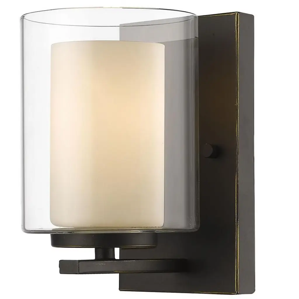 Designed with a cylindrical glass shade, this sconce boasts a classic look that works well in any decor. Hardwired.