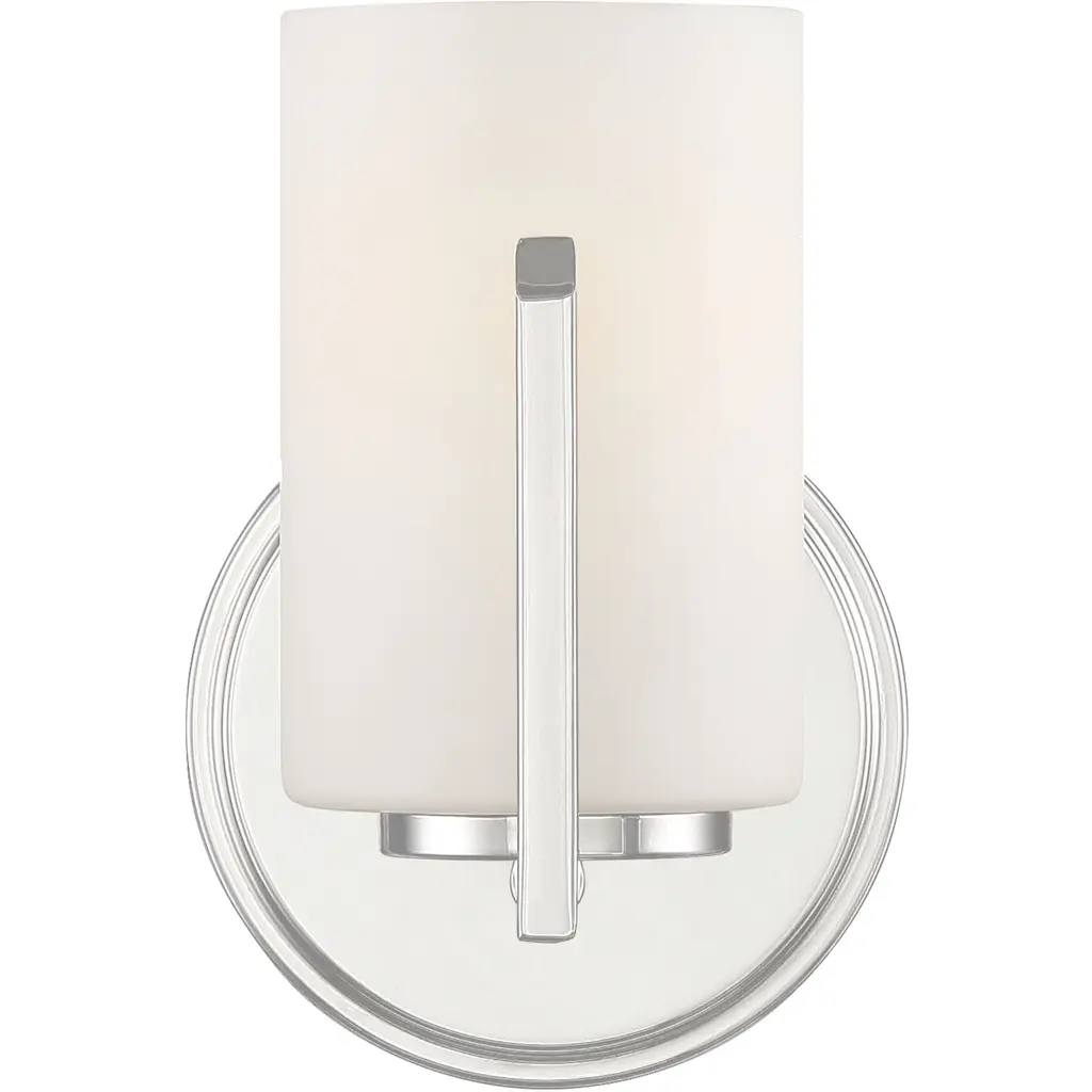 Designed with a cylindrical glass shade, this sconce boasts a classic look that works well in any decor. Hardwired.