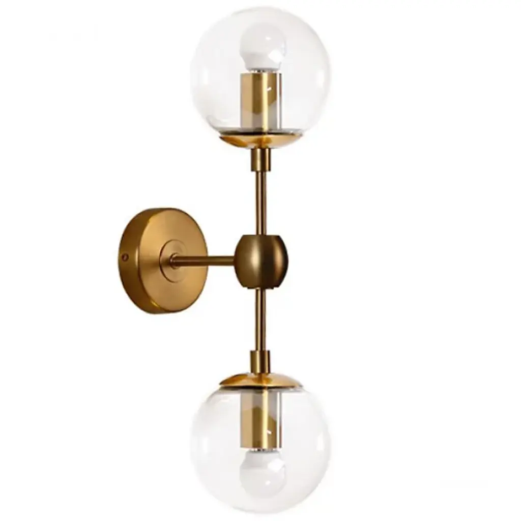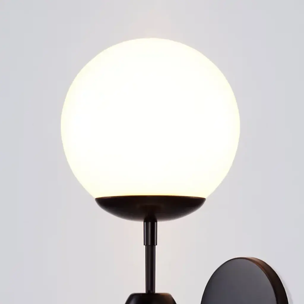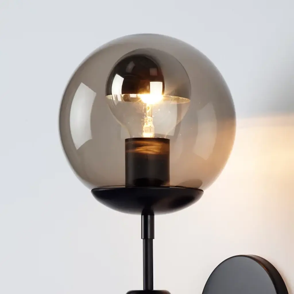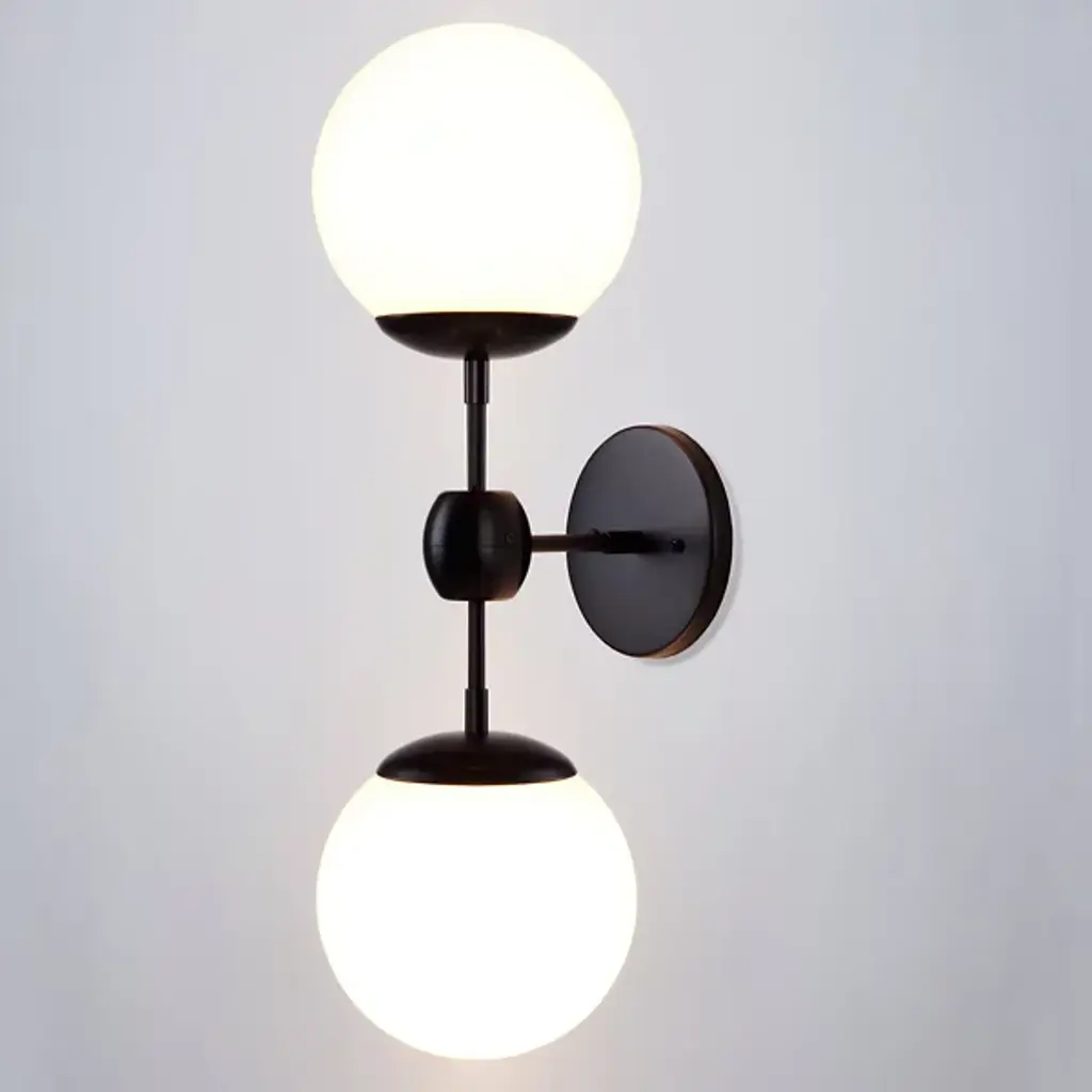 Add an elegant modern accent to wall spaces with the Modo Wall Sconce - 2 Globes from Roll & Hill. Inspired by retro-modern aesthetic, designer Jason Miller uses off-the-shelf struts and connectors of finely-machined aluminum to create a unique, layered design. Secured by a sleek disc wall plate and short horizontal stem, the fixture projects a vertical branch of opposing glass globes which shield the lamping, diffusing their light into an even ambiance.