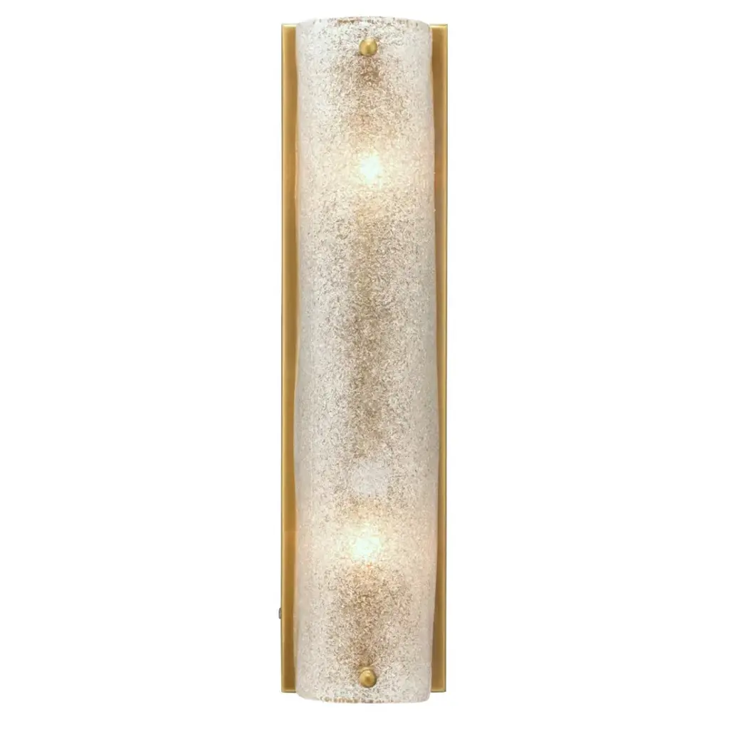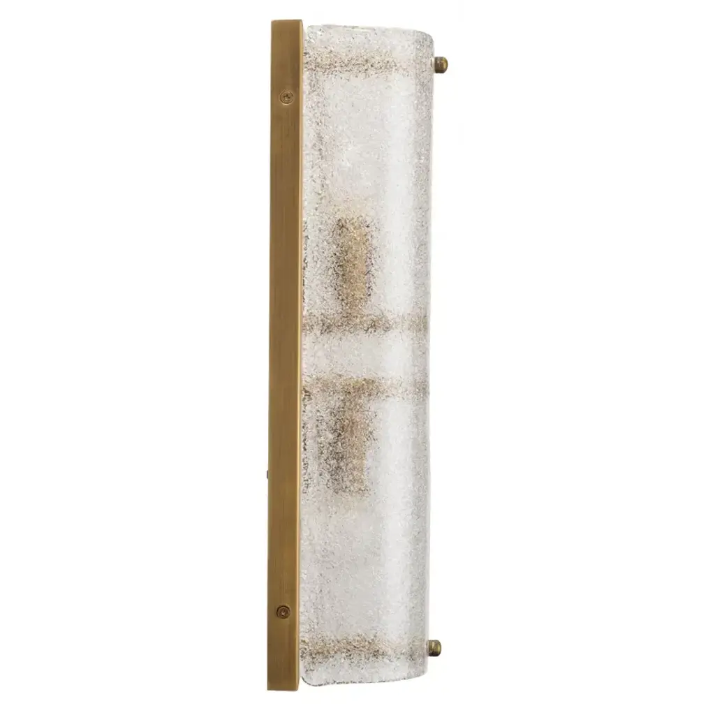 Transform any room in your space with this sconce. The glass is crafted to create an icy, glacial look and the warm hand-finished steel in antique brass details make it timeless.