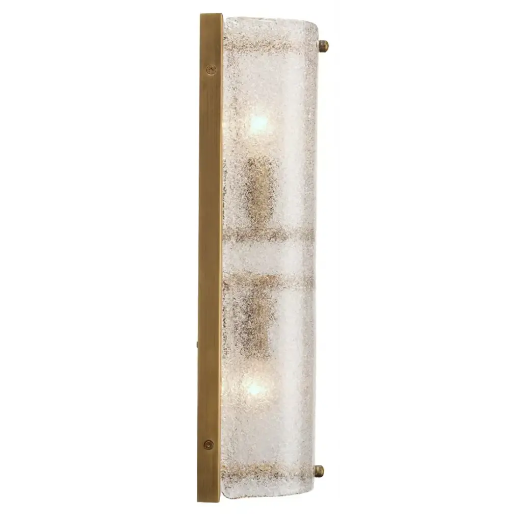 Moet Double Rounded Sconce, Textured Melted Ice Glass And Antique Brass Metal