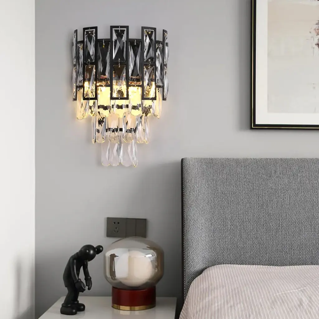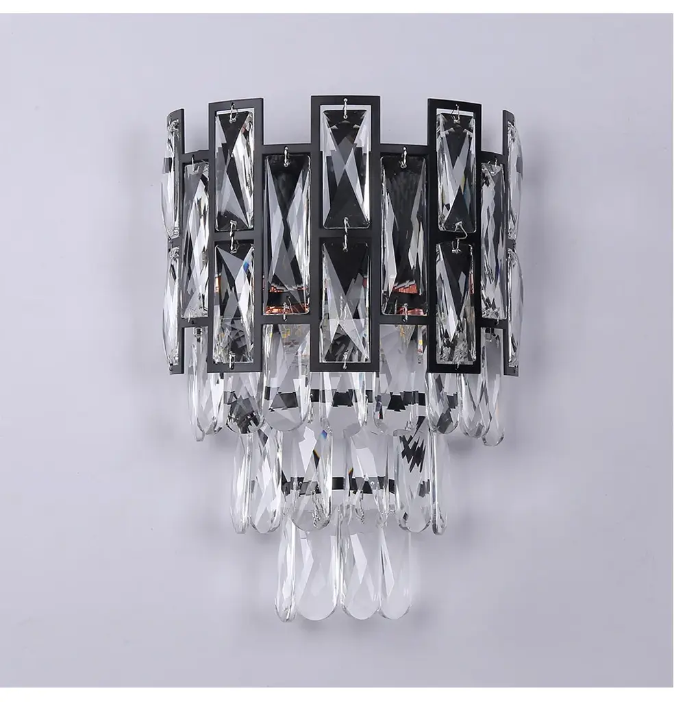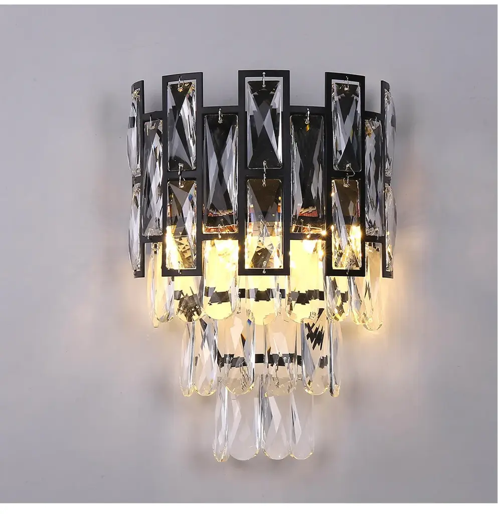 This crystal wall sconce radiates style and elegance in any decor. A welcome addition to any room in your home, this crystal wall sconce will not disappoint. The crystals are handcrafted to be both beautiful and durable. The crystals are spaced out evenly around the fixture to create a glowing wall sconce that will highlight your decor beautifully.Material: Stainless Steel, K9 CrystalLight Source: E14 LED Bulbs (Included)Dimmable: Yes Height: 13.5"Width: 8.5"Finish: Polished, ElectroplatedVoltage: 110-240VWarranty: 2 Years