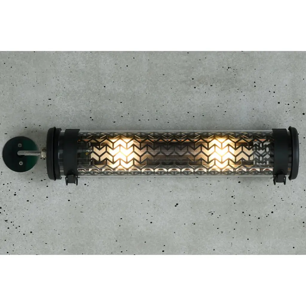 Sammode’s Monceau Mini wall lamp provides a French-style industrial feel and softly diffused light filtered through a decorative metal grid. The Monceau Mini lamp is fully waterproof, making it suitable also for bathroom or outdoor use. Hardwired installation. Designed by Normal Studio for Sammode, the Monceau lamp is part of the Paname collection that draws inspiration from different parts of Paris – the geometric grid pattern of Monceau has references to the antique parquet floors of upper-class Parisian apartments. The lamp is manufactured in Châtillon-sur-Saône, France.