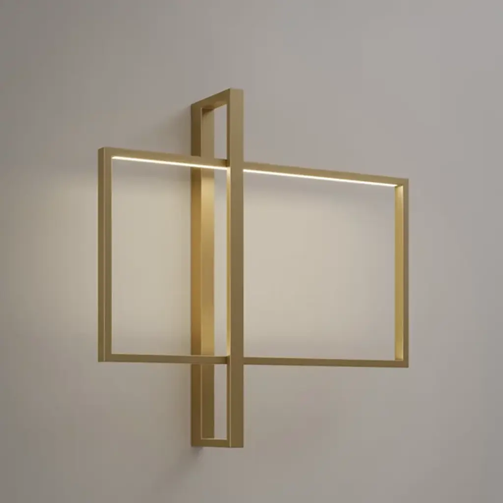 The Mondrian LED Wall Sconce by Venicem epitomizes ingenious contemporary design, drawing inspiration from the captivating interlocking patterns of its artistic namesake. Crafted as a rectangular sculpture extending gracefully from a concealed wall mount, it integrates LED lighting within each captivating frame. The intricate arrangement emphasizes the precise intersections of geometric shapes, resulting in a dynamic three-dimensional sculpture that casts elegant angular shadows while emitting a powerful, energy-efficient glow. This design fuses simplicity with sophistication and combines artistic flair with practical functionality, adding a touch of modern elegance to any space.