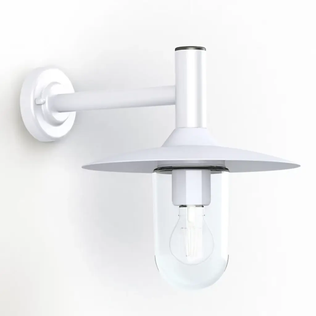 The Montana Outdoor Wall Sconce from Roger Pradier is a chic addition to your décor. It is secured by a durable backplate that holds an aluminum arm in place. A shade of refined glass is elegantly crowned by a brim-like framework that draws your eye. Illuminated by an LED, this sconce from France is durably made to withstand the elements, illuminating various environments easily. This fixture beautifully combines both farmhouse and transitional styles.