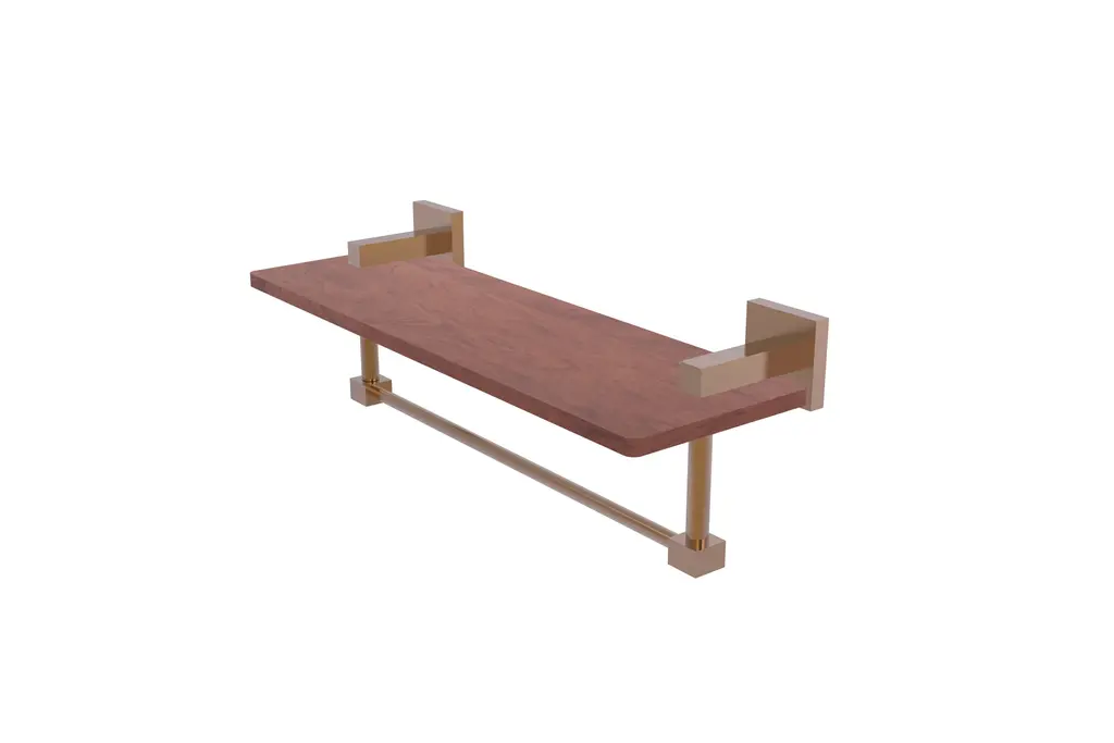 Montero 16" Solid Wood Shelf With Integrated Towel Bar, Brushed Bronze