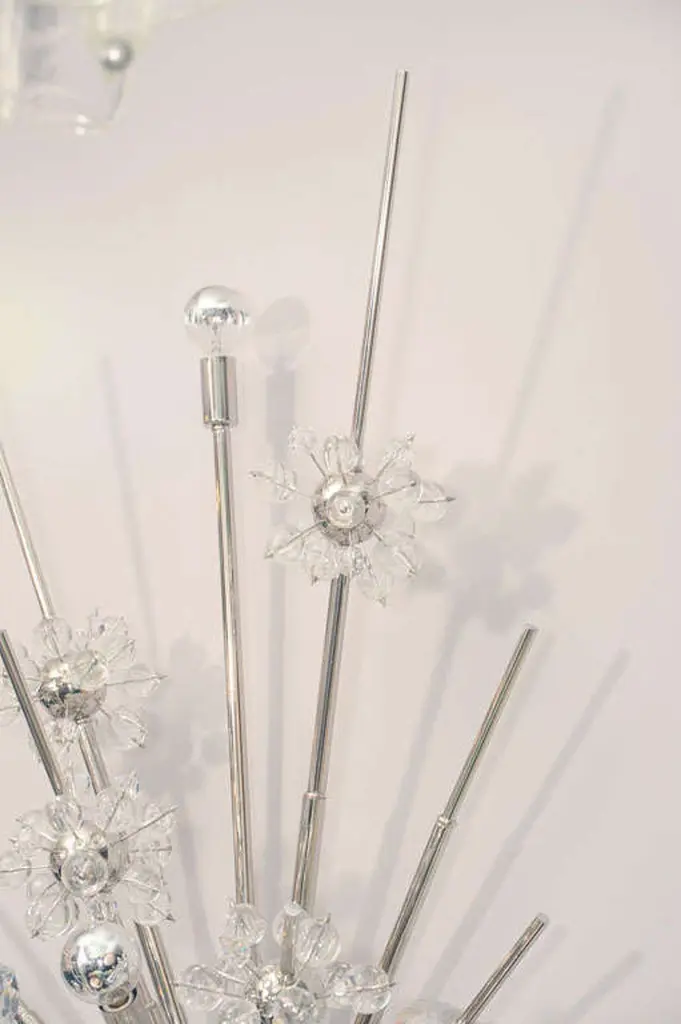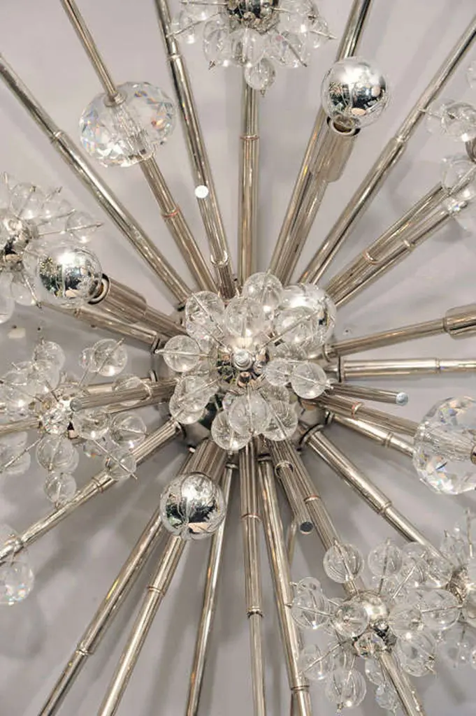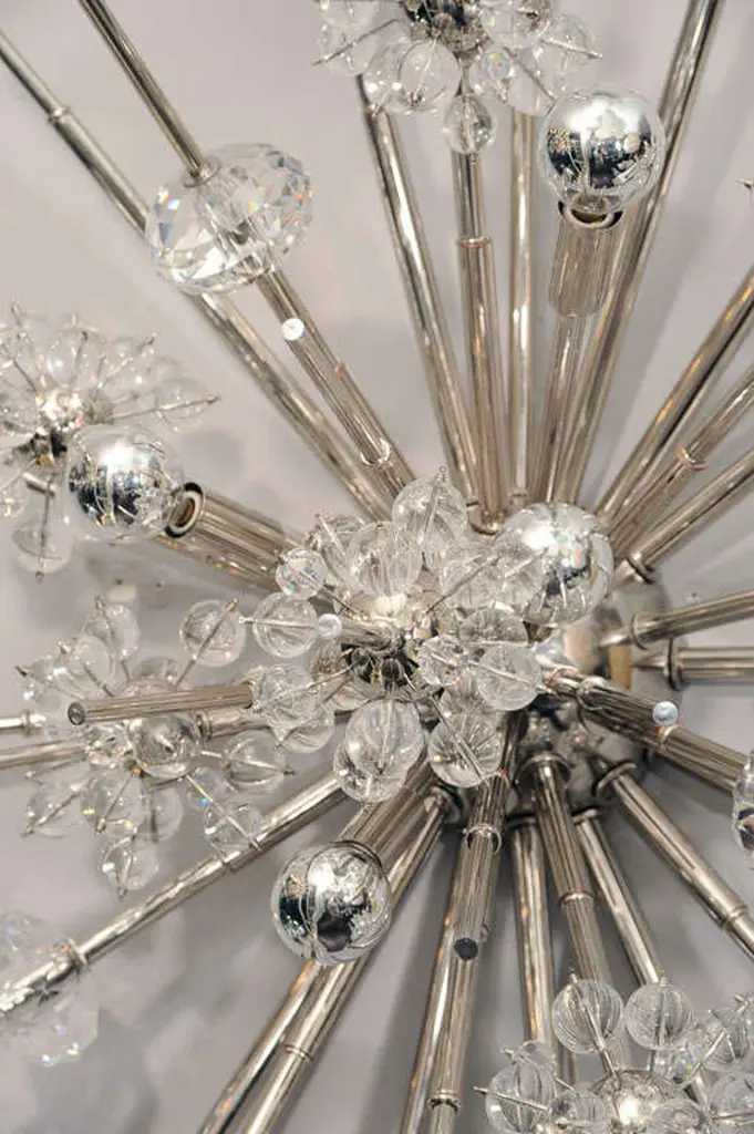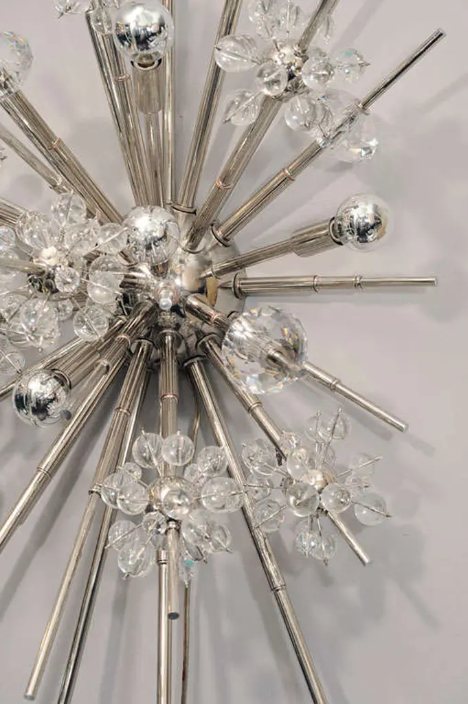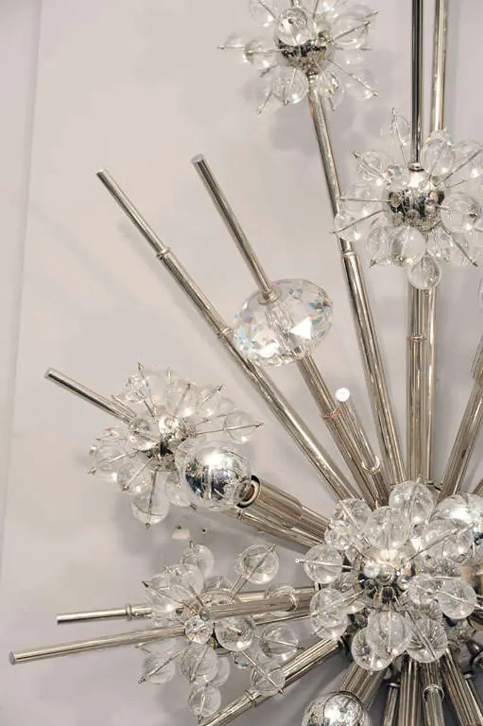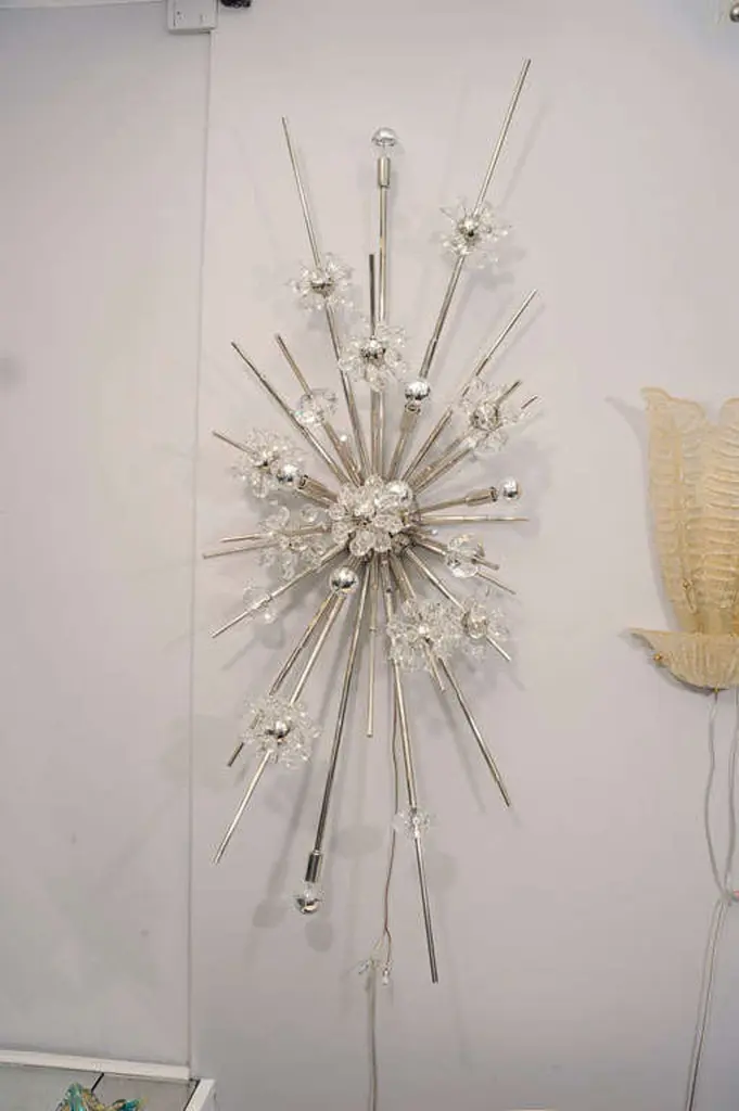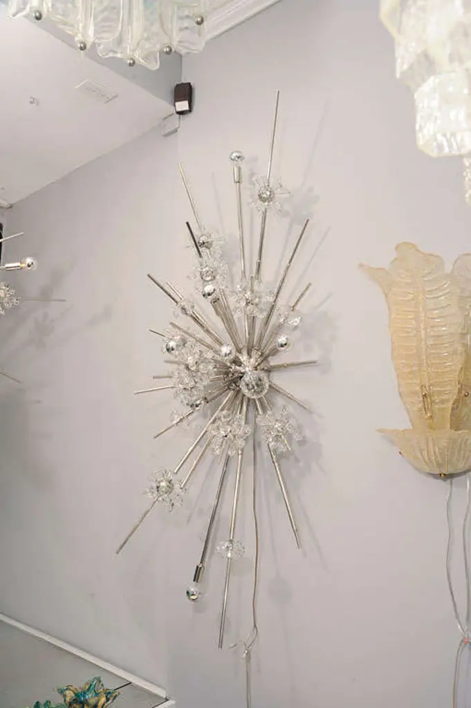 Custom monumental crystal starburst sconce in nickel finish. Customization is available in different sizes and finishes.
