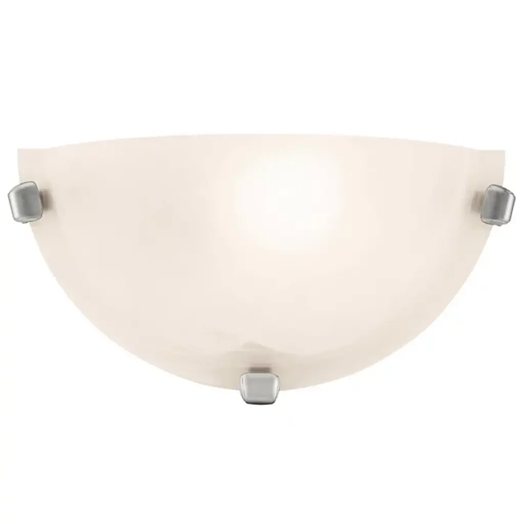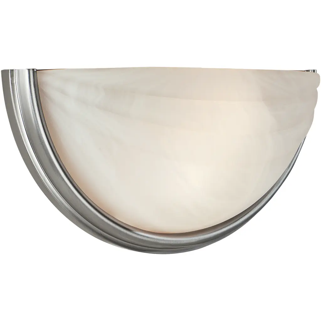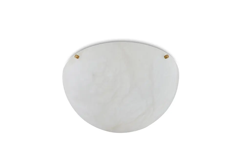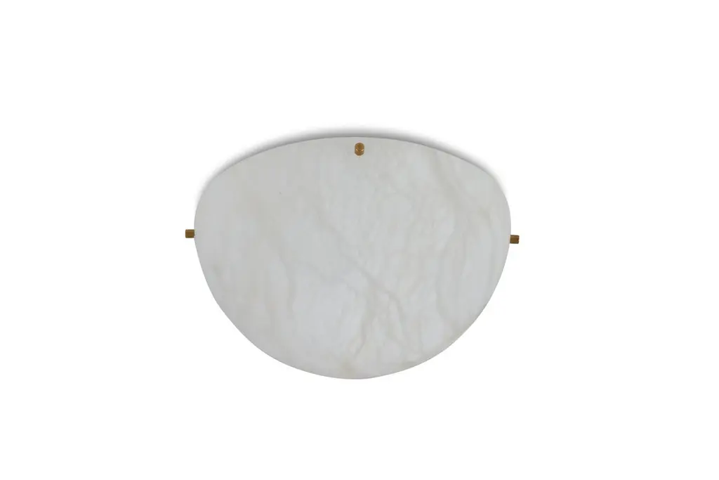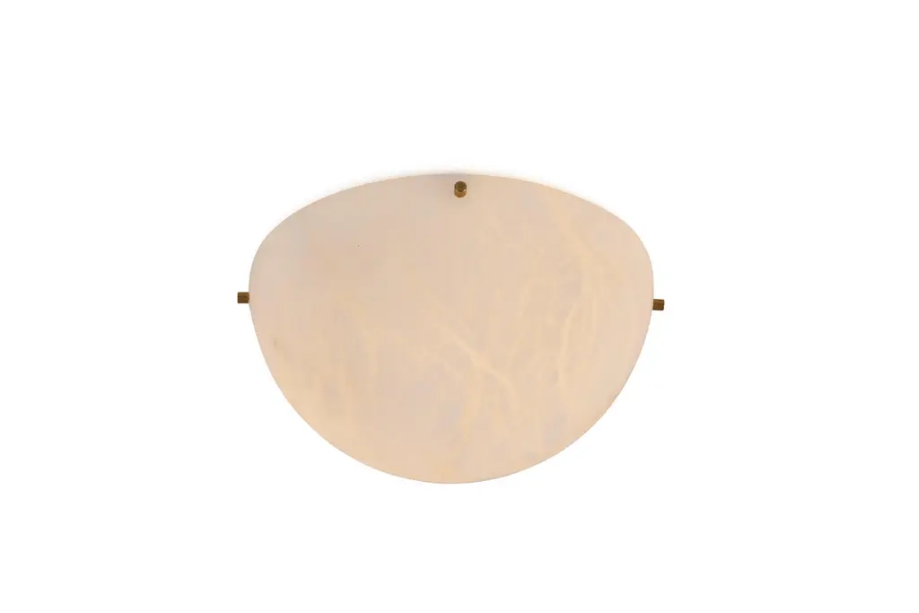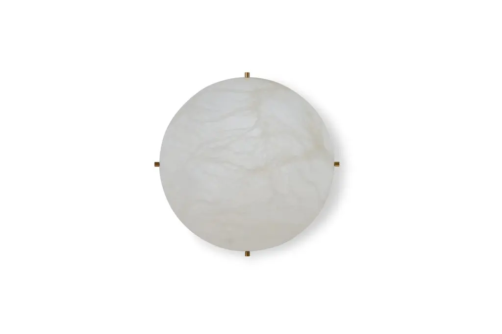 'Moon 4' Alabaster Ceiling or Wall Lamp in the Manner of Pierre ChareauHandcrafted in Los Angeles in the workshop of noted French designer and antiques dealer Denis de le Mesiere, who meticulously pays homage to the work of Pierre Chareau with scrupulous attention to detail and materials. Executed in the highest quality European alabaster half-sphere mounted on a Minimalist steel bracket with four solid brass or nickel caps, this ultra refined design adds a sculptural element and focal point of incomparable beauty. Can be use as a flush mount or sconce.Accommodates 2 x standard candelabra base (e12) LED bulbs. LED only. UL listed.Price is per item. Available in two sizes and with 4 or 8 metal accent pieces around the outer edge. Brass, bronze or nickel hardware available; please specify finish when ordering. This listing is for the smaller sized lamp with 4 accent pieces around its outer edge.Alabaster sphere measures 11" in diameter; total diameter with hardware 11.5". Custom sizes also available for an additional fee and with extended lead times possible.Please note that alabaster can vary from item to item due to the organic nature of the material.Handmade to order in Los Angeles. All sales are final.