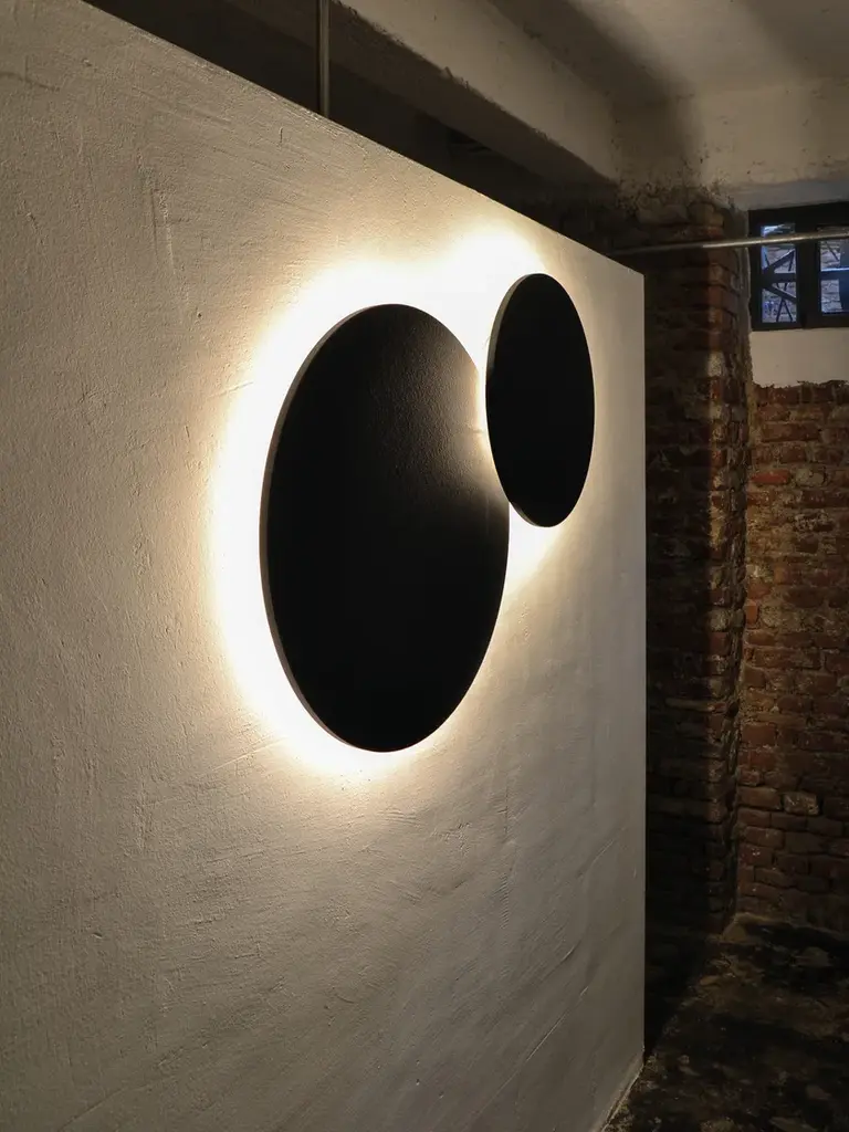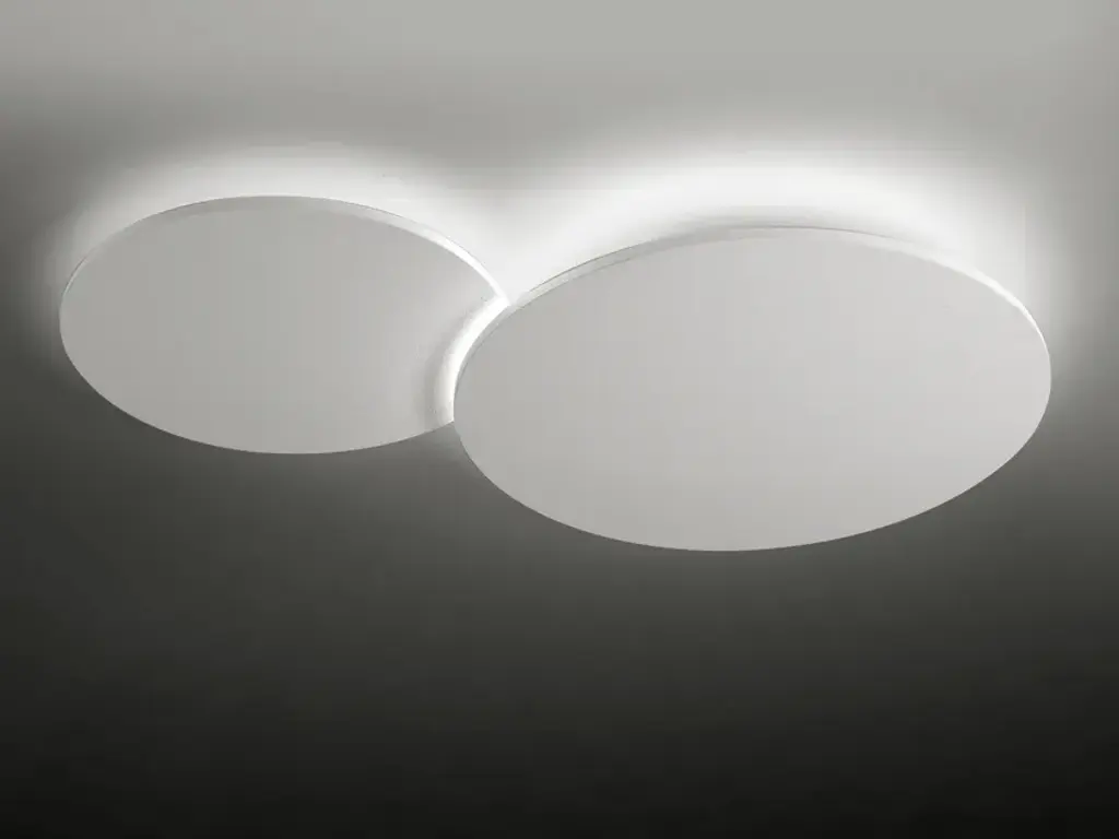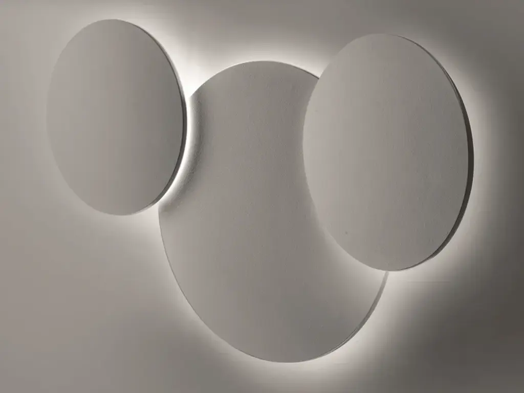 MOONLIGHT is a ceiling/wall lamp for radial light emission. In the raw version the frontal MDF panel requires further finishing with water paint or other varnishes at choice. It is possible to create compositions overlapping more elements by means of a specific kit to be ordered separately.Finish: Raw white, Blackboard, Gold leaf, Silver leaf, MirrorSource: LED 15W 2000lm 4000K / LED 15W 1900lm 3000K / LED 15W 1780lm 2700K