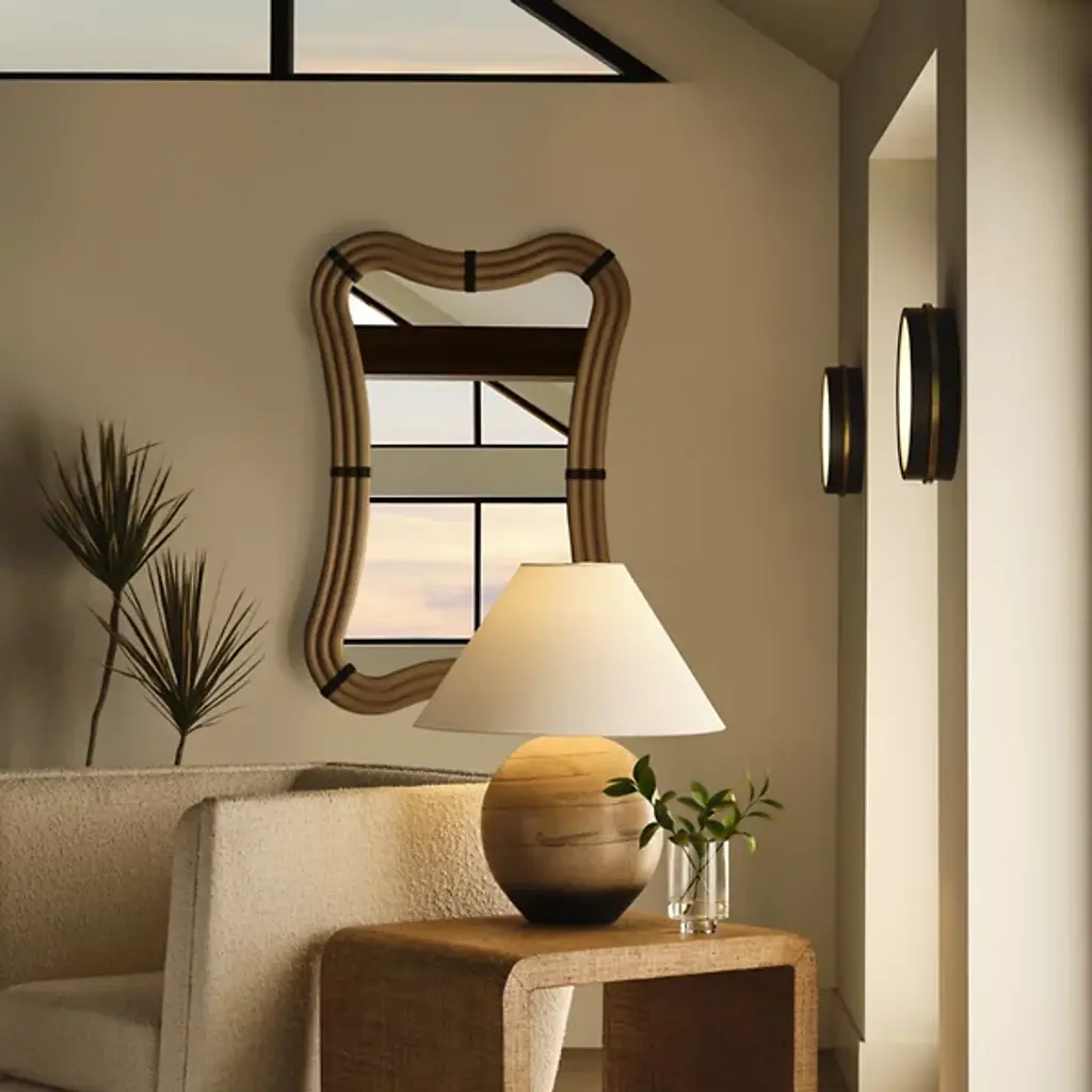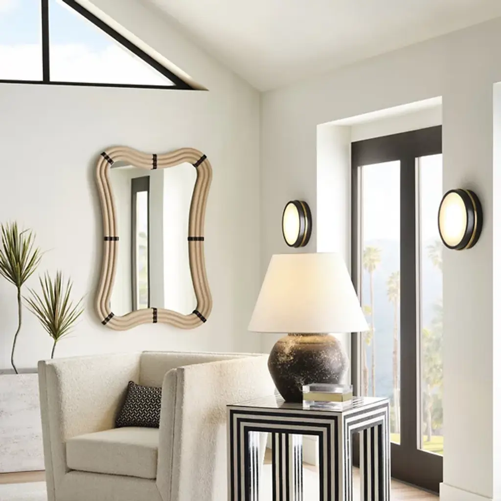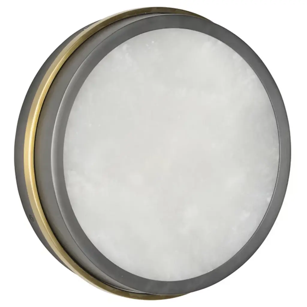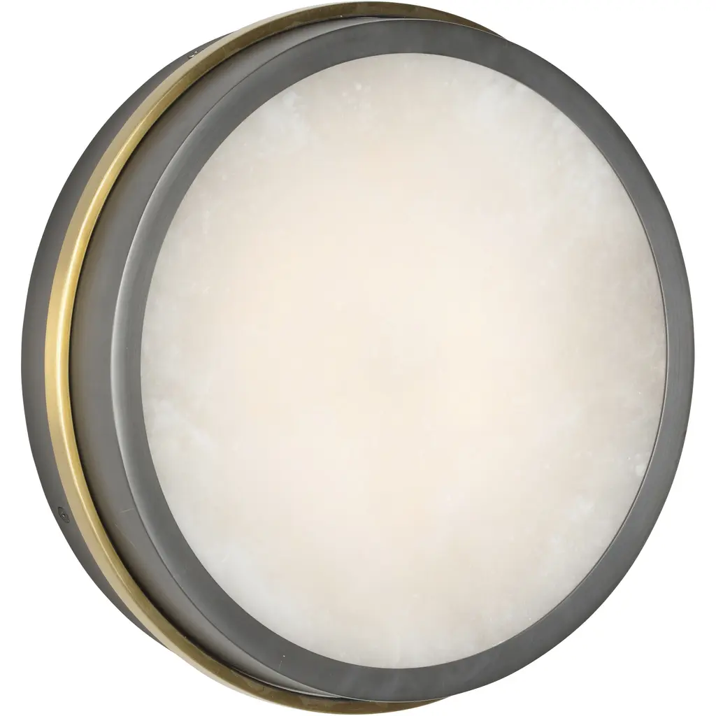 The Moonlight LED Wall Sconce from Wildwood is a refined lighting fixture that blends timeless elegance with modern design. A circular alabaster panel emits a soft, diffused glow, creating a warm, inviting ambiance. Framed by luxurious brass and bronze accents, the sconce offers a contrast that elevates its minimalist silhouette. Damp-rated for versatility, it can also be mounted as a flush ceiling fixture, making it ideal for bathrooms, hallways, or living spaces.