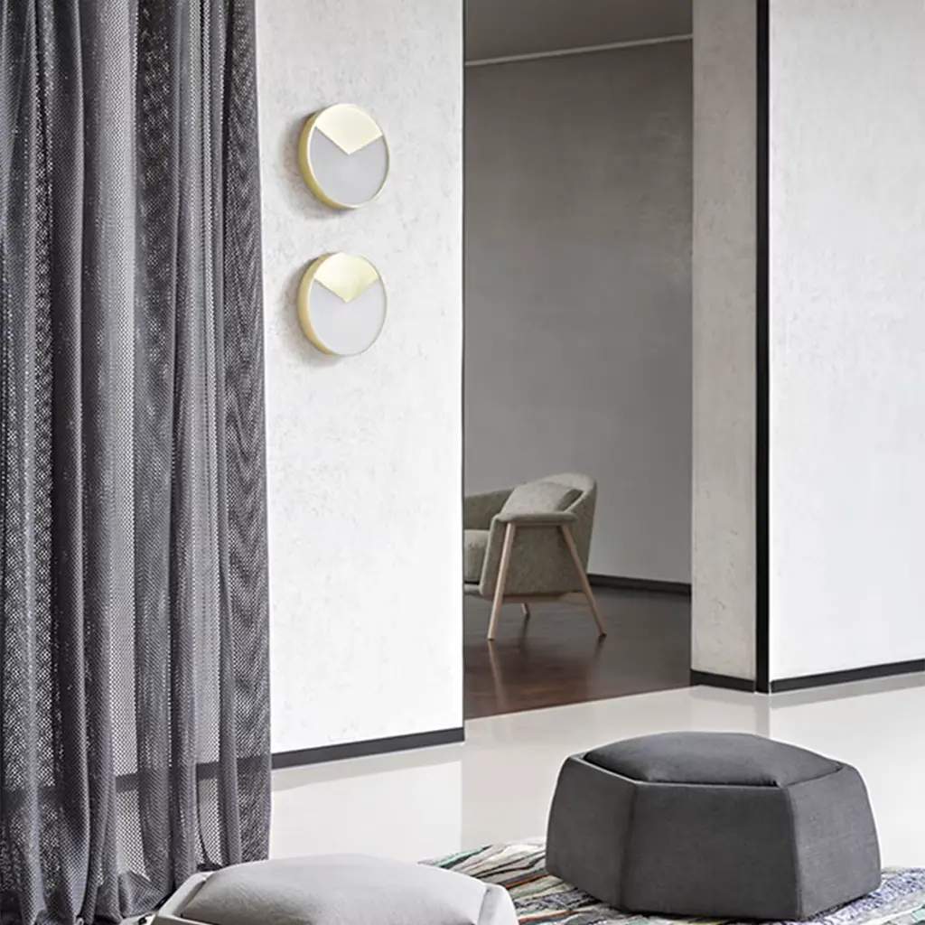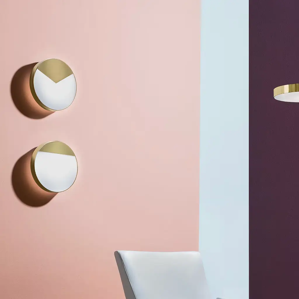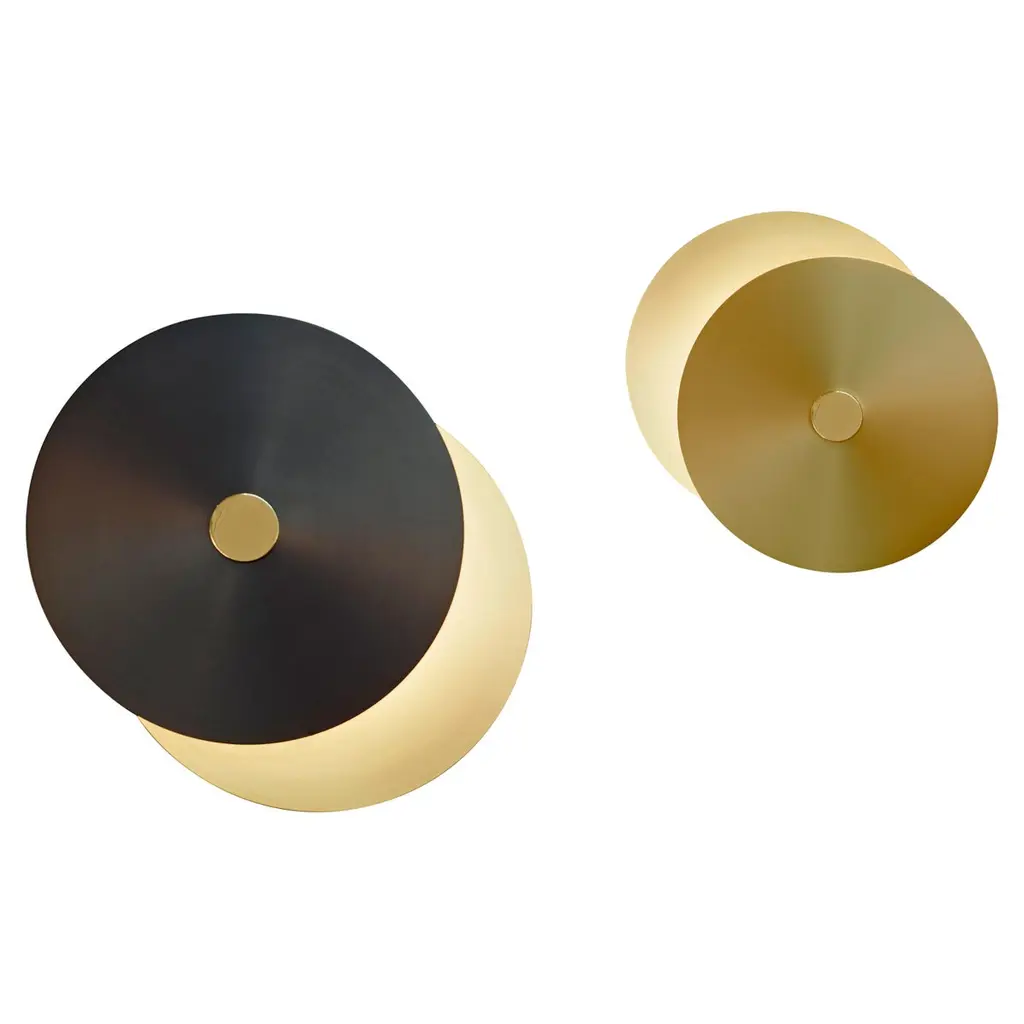 This exquisite metal sconce by Matteo Zorzenoni is an exercise in geometric and elegant lines. Attached to the circular brass structure by means of magnets, a small, triangular metal sheet with a satin brass finish adds a sophisticated accent creating a suggestive geometric effect. Moonlight is available in a matte black version and in 33 or 40 cm-diameter options.