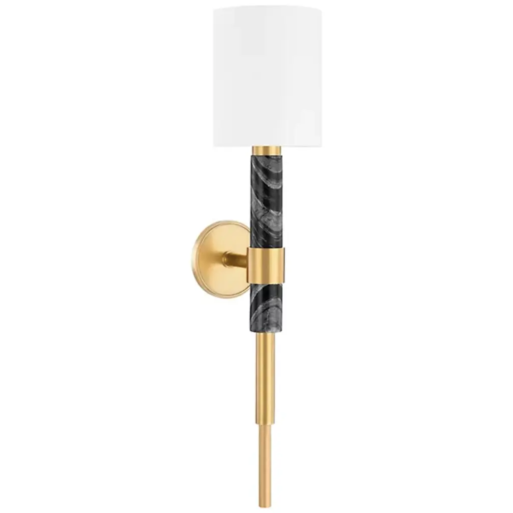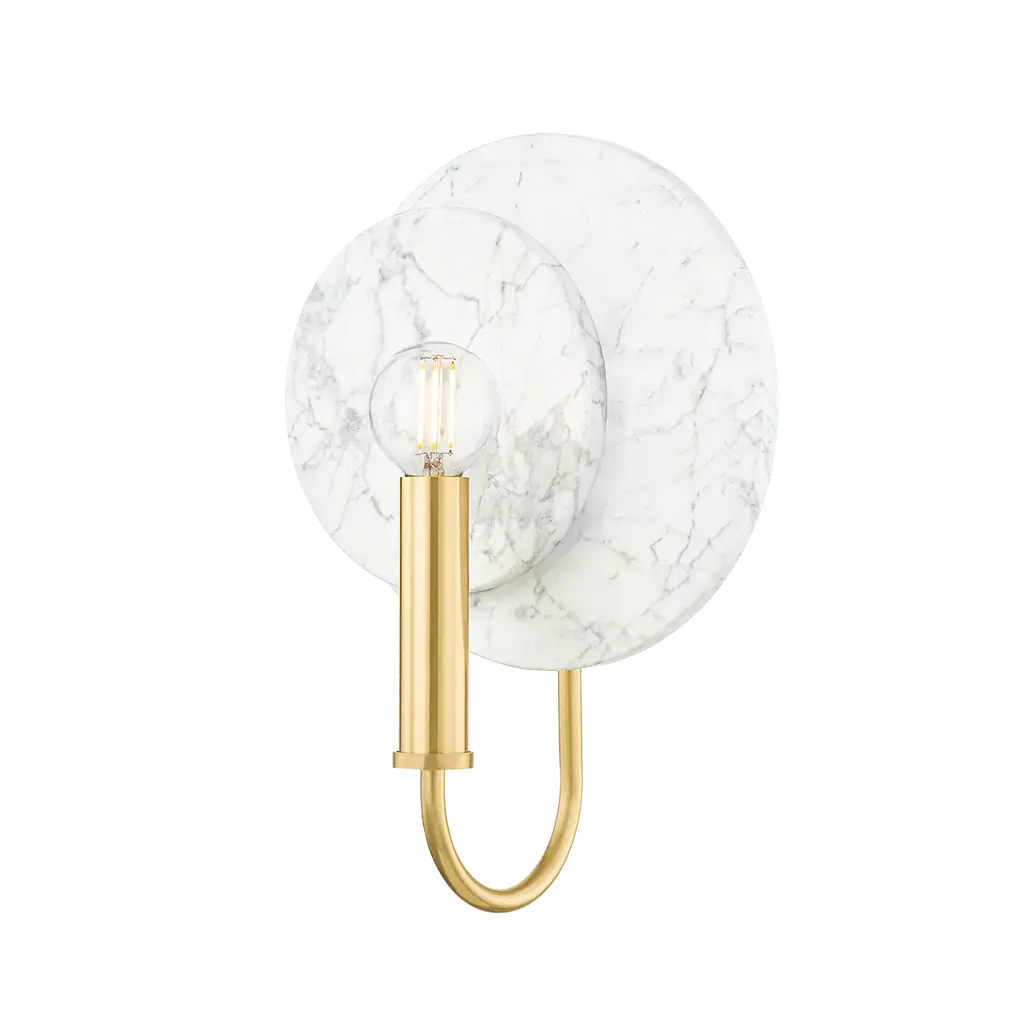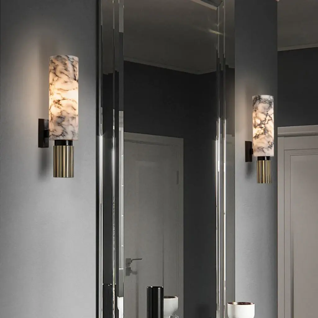 These beautiful wall sconces are handmade from natural marble. The warm, earthy tones of the marble will complement any room. Hung alone or in pairs, these sconces are the perfect way to add some natural beauty to your home. Marble sconces are all-natural marble imported from Spain. The natural patterns of sedimentary rock include, but are not limited to, snow patterns, ink patterns, flame patterns, ice cracks, etc. The texture of each sconce is unique. Material: Natural Marble, IronLight Source: LED Chips (Installed)Power: 3WSconce Size: H13.5" x W5"Dimmable: NoColor Temperature: Warm (3500K)Voltage: 110-240VWarranty: 2 YearsApplication: Living Room, Dining Room, Bedroom, Hotel, Bar etc.