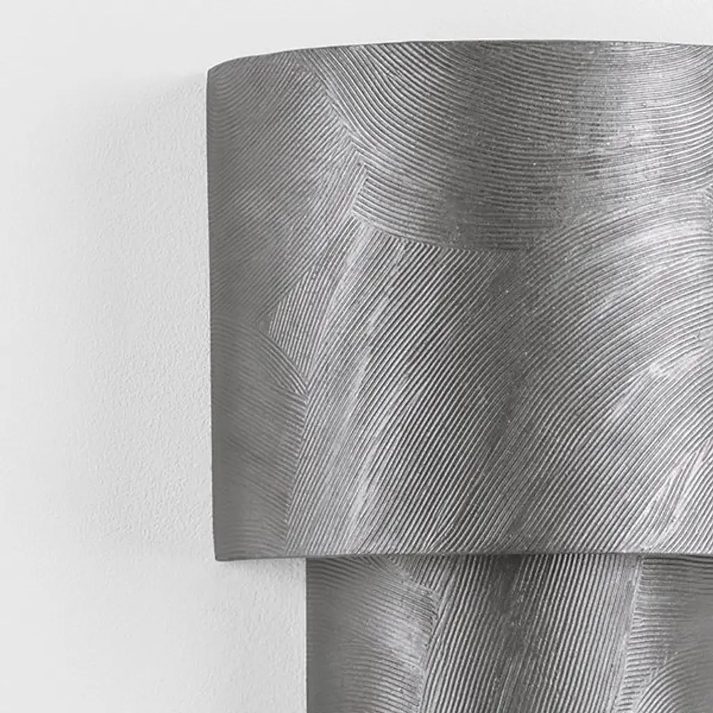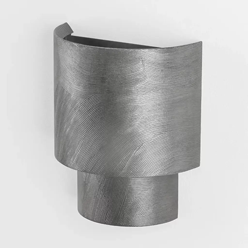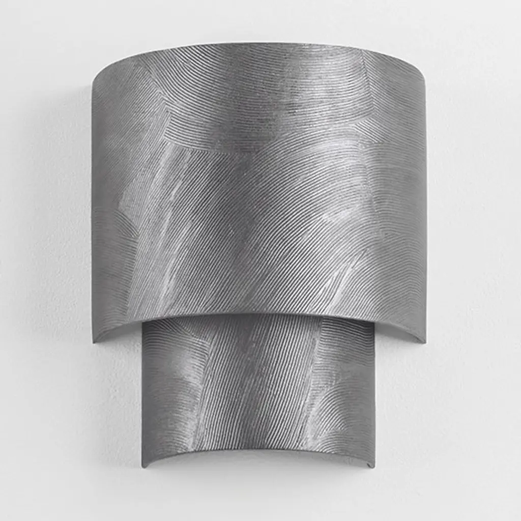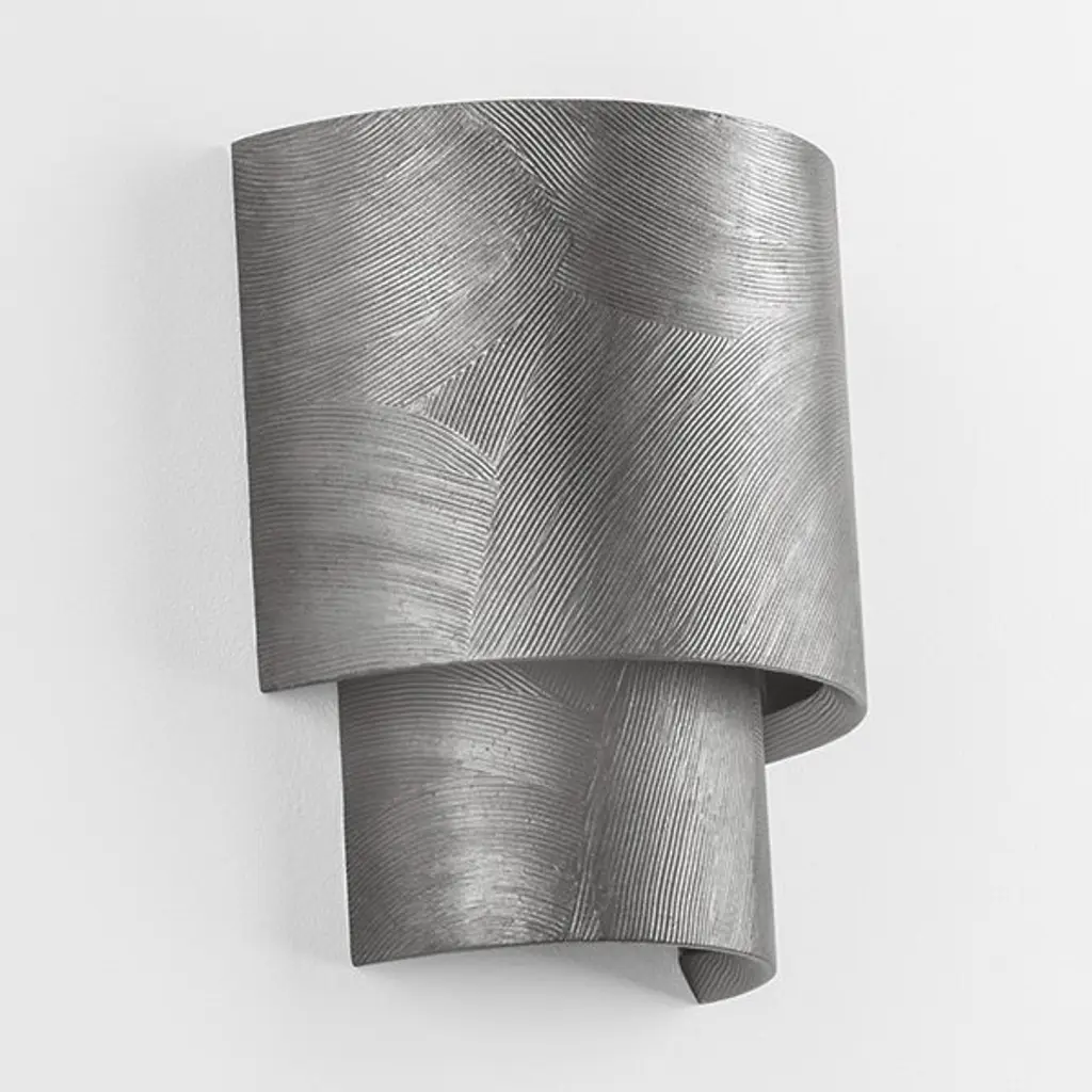 The Moray Wall Sconce from Hudson Valley Lighting features a sculptural, two-layered design where metal panels curve away from the wall to create a nested shade effect. The textured surface adds depth to what appears at first glance to be a minimalist form. Mounted to a round backplate, the sconce creates interesting shadow play as light reflects off its troweled finish. It works well in pairs to frame doorways or in a series along hallways where repetition enhances the artistic impact. The handcrafted quality of the metal gives each piece subtle individuality while maintaining the collection's uncluttered appeal.