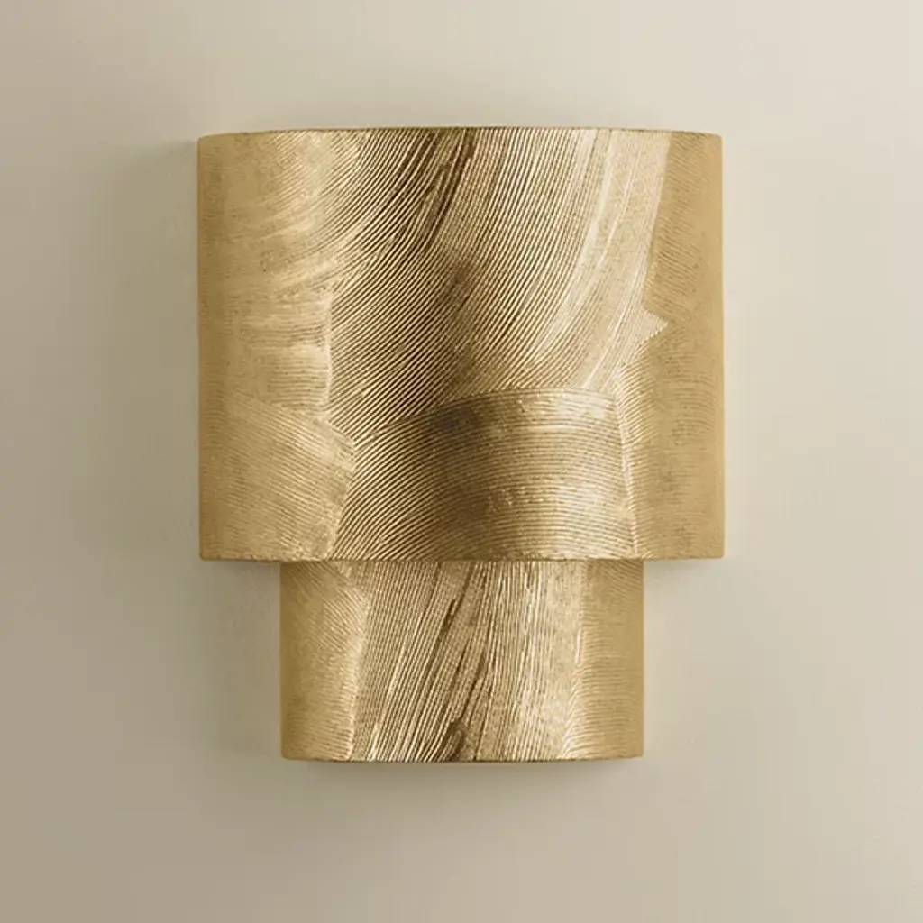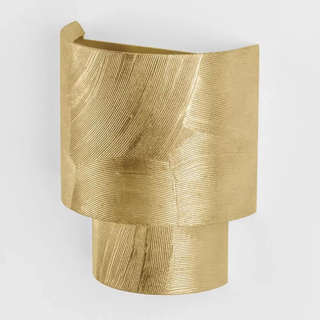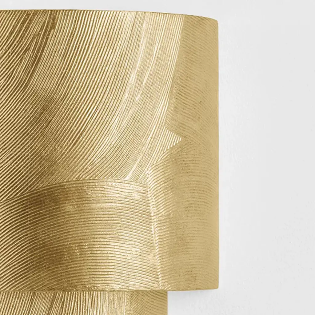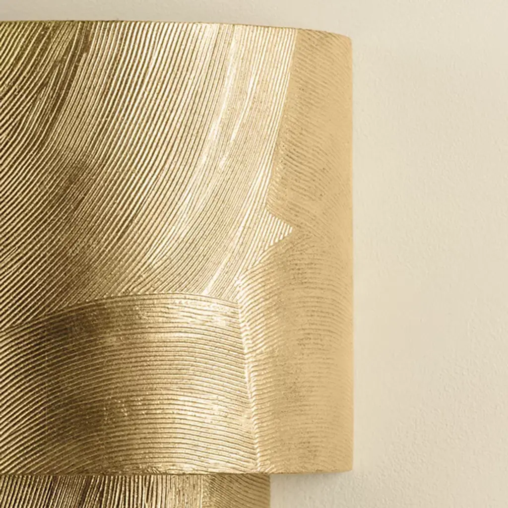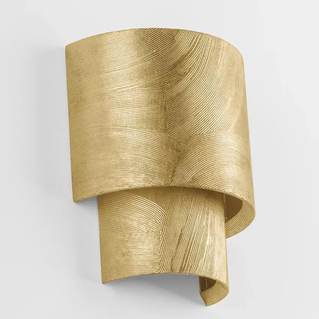 The Moray Wall Sconce from Hudson Valley Lighting features a sculptural, two-layered design where metal panels curve away from the wall to create a nested shade effect. The textured surface adds depth to what appears at first glance to be a minimalist form. Mounted to a round backplate, the sconce creates interesting shadow play as light reflects off its troweled finish. It works well in pairs to frame doorways or in a series along hallways where repetition enhances the artistic impact. The handcrafted quality of the metal gives each piece subtle individuality while maintaining the collection's uncluttered appeal.