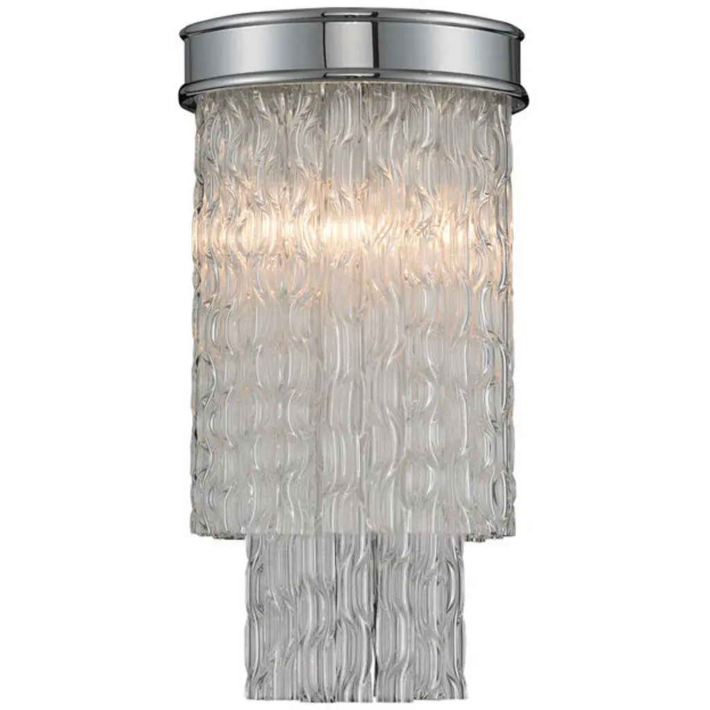 The Morgan is a British sports car known for its unique blend of charisma, craftsmanship and performance. Handcrafted since 1909, the Morgan''s glamourous, shining curves, combined with its open, minimalist design, could be considered a foreshadowing of modern Lux Industrial. With Morgan by Varaluz, Handcrafted, curved ice glass is elevated with stamped wave patterns on both sides. The glass is then presented over brass, nickel and black foundation plates, making every Morgan fixture more of a museum piece than just a simple fixture.''Hand-made Ice Glass with Pattern Stamped on Both SidesSlightly Oversize Back Plate Creates a Visual FrameAdjustable HardwareDust with a soft dry clothRequires 2 x 75W Medium Incandescent bulb(s) (Not included).