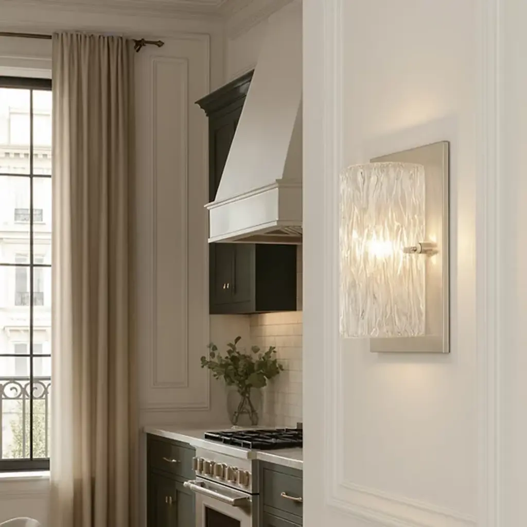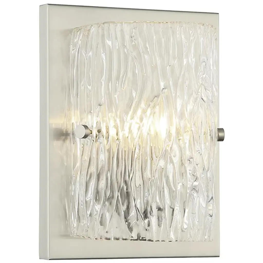 Wall lighting inspired by a British sports car. The Morgan Wall Sconce by Varaluz pays tribute to the same-named vehicle’s smooth, shiny curves with its distinctive glass shade. The otherwise minimalist curve of glass becomes dazzling with the stamped pattern pressed into both sides. Appropriately enough, the shade and its artful sparkle are framed by the slightly oversized wall plate. Use this wall sconce to add cheerful ambience and handcrafted elegance to a dining room, living room or hallway.