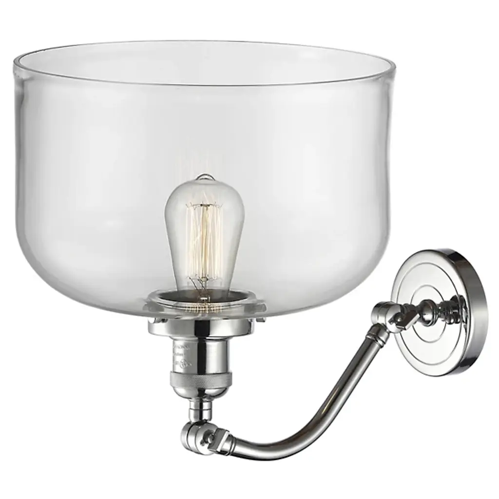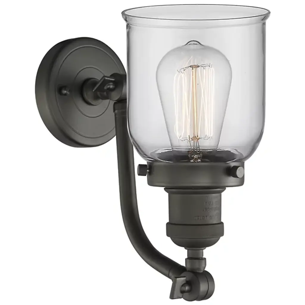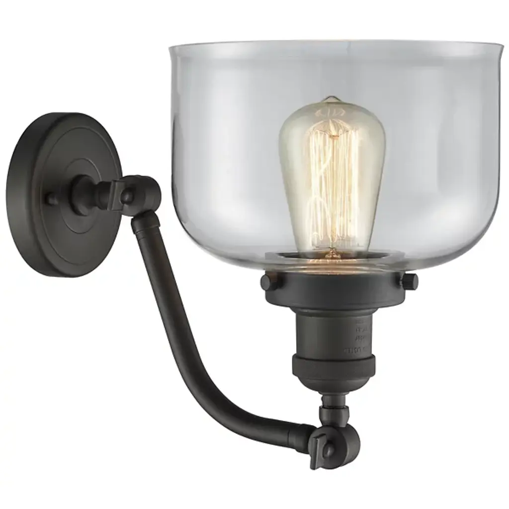 The Moriah Curved Wall Sconce by Alder & Ore blends classic industrial form with distinctively feminine touches. Designed by Bruno Marashlian, this versatile steel and cast brass double swivel design features a curved arm with swivels on each end. This allows for the lamp to extend or direct light where needed. With its classic glass bell shade, the Lillia shines as accent wall lighting in a living room, dining room, foyer or hallway.