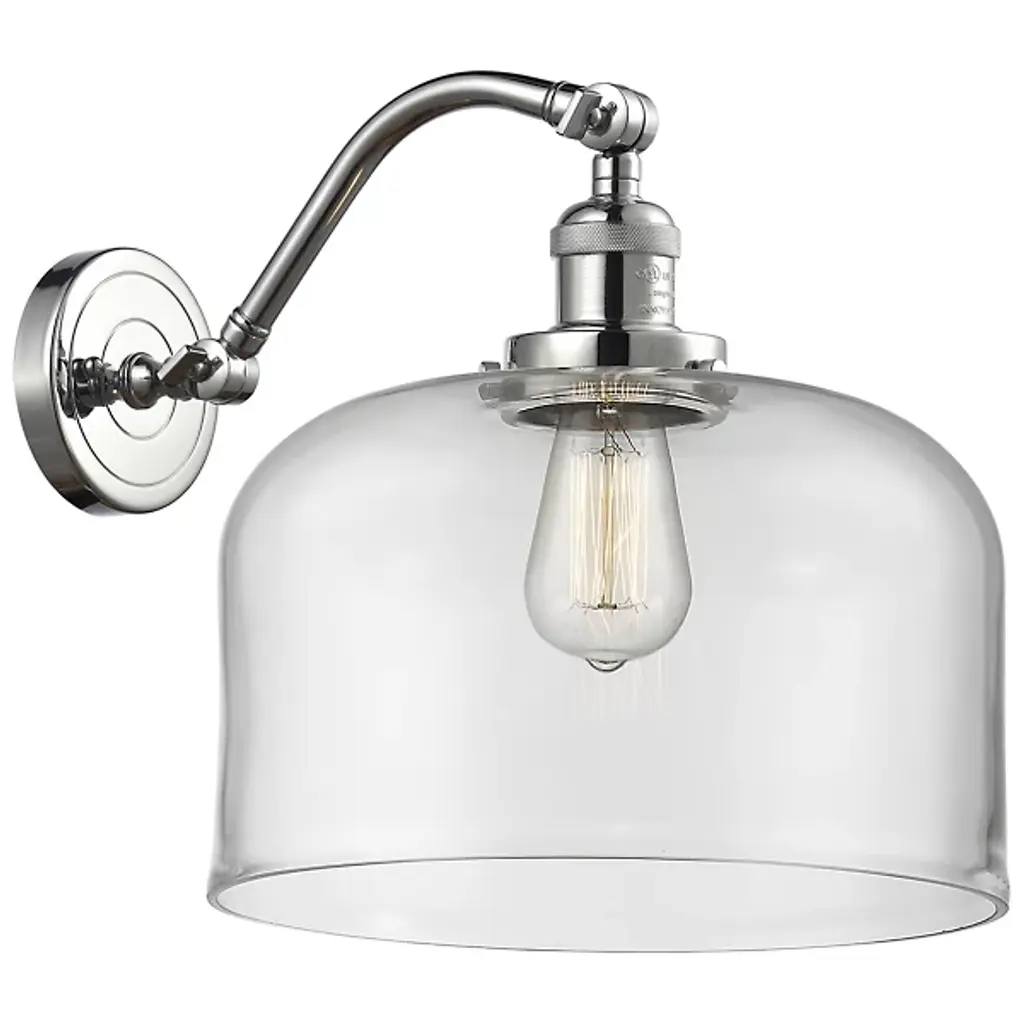The Moriah Curved Wall Sconce by Alder & Ore blends classic industrial form with distinctively feminine touches. Designed by Bruno Marashlian, this versatile steel and cast brass double swivel design features a curved arm with swivels on each end. This allows for the lamp to extend or direct light where needed. With its classic glass bell shade, the Lillia shines as accent wall lighting in a living room, dining room, foyer or hallway.