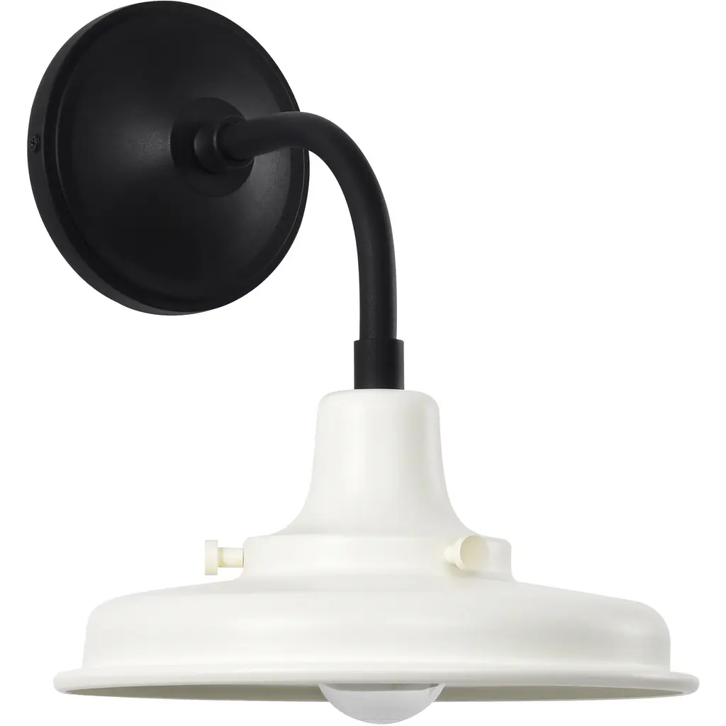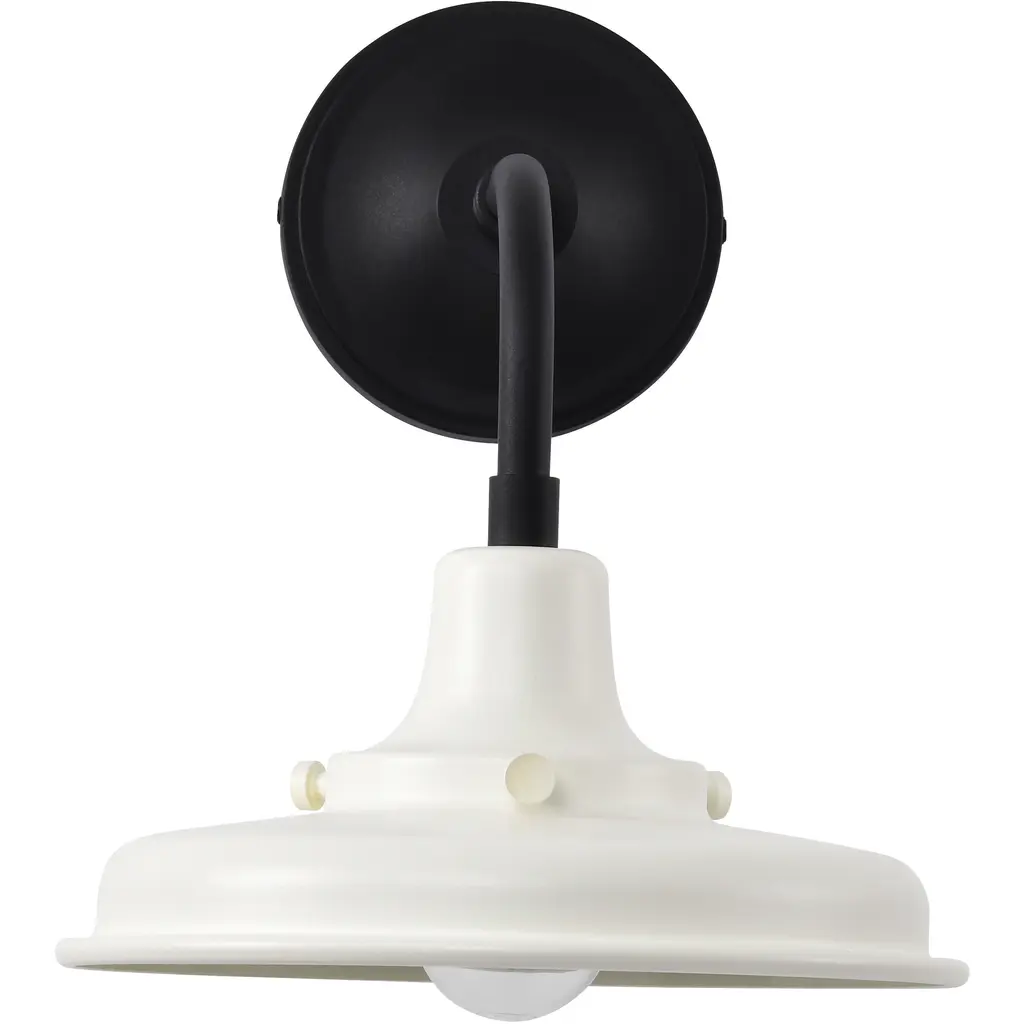 Capture the charm of countryside living with the Morris 60-8560 outdoor small wall lantern. Designed with a classic barn light silhouette and accented by industrial details, these fixtures bring farmhouse chic to your exterior spaces. The distinctive goose neck arm and metal shade exude rustic charm, while modern finishes elevate the design. A textured black finish with a white painted shade for bold simplicity, with a warm, vintage-inspired look. Perfect for porches, patios, or garage entries, the Morris wall lantern blends tradition with style, creating inviting spaces where nostalgia meets modern sensibility.