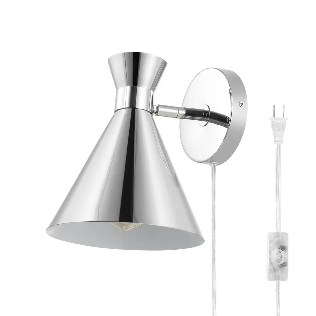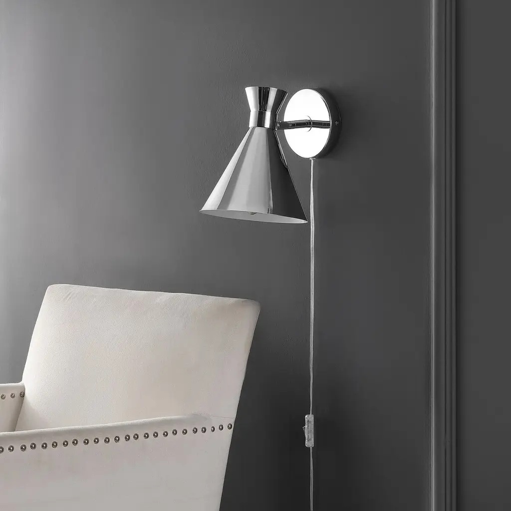 Strike an impact with our chic and stylish Morris wall sconce. The mid-century charm of our wall sconce is accentuated with a stunning mix of finishes. A double cone shade extends from a round back plate to attain a sleek geometric appeal. Bringing added style and definition to our modern wall sconce, it casts focused light downwards, making it a perfect complement to a stylish reading nook, bedroom, or home office.