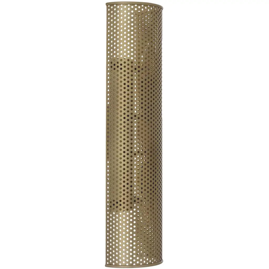 The modern Morrison Wall Lamp teams a rich antique brass finish with a bold geometric design. It features an industrial inspired shade with small perforated holes to create a soft lighting effect. Combine with the antique brass Morrison Chandelier to create a stylish look in your interior.
