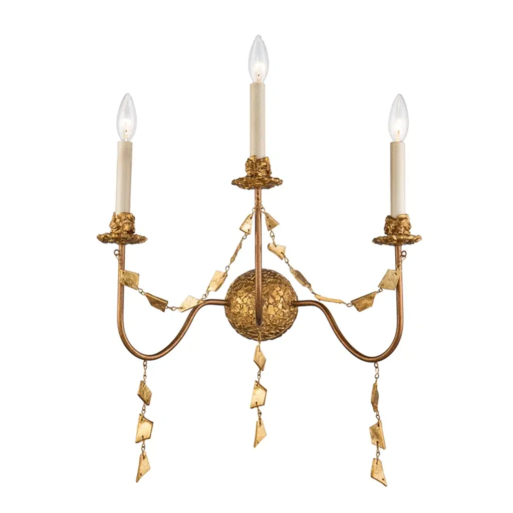 Mosaic 3-Light Flambeau Inspired Wall Sconce In Antique Gold