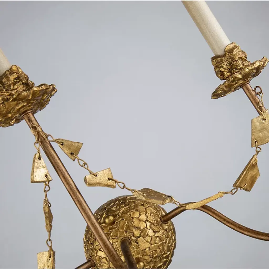 The Mosaic Flambeau Wall Sconce by Lucas McKearn features ornate steel that will complement many updated traditional and modern designed decors. Charming and whimsical, this Wall Sconce uses a simply styled backplate to make it a versatile choice for a bathroom, hallway, or dining room. A strand of sculpted Mosaic pieces drapes from its symmetrically curved arms, creating a graceful look that is both beautiful and elegant.