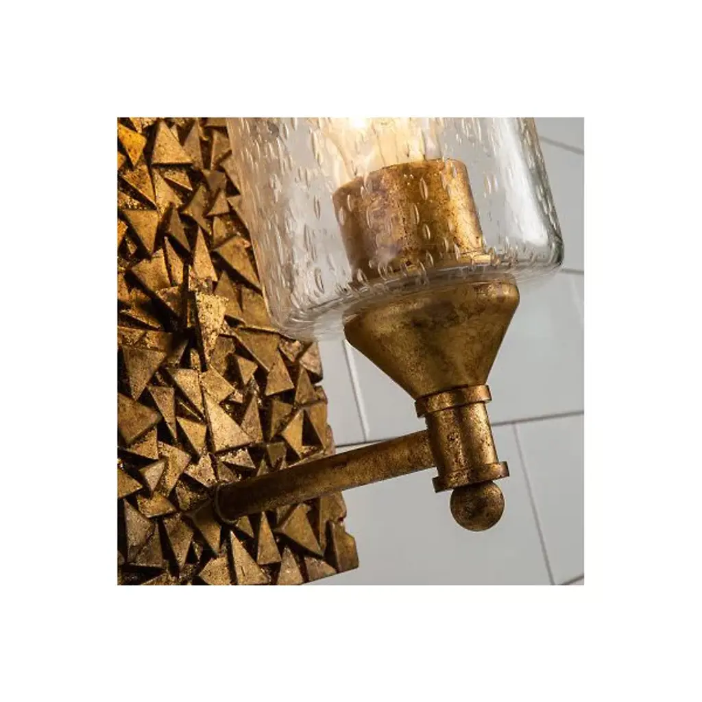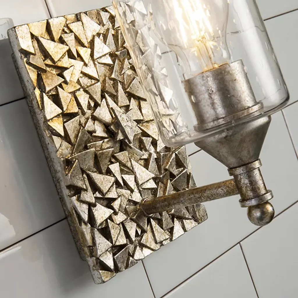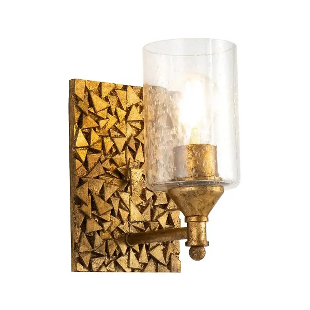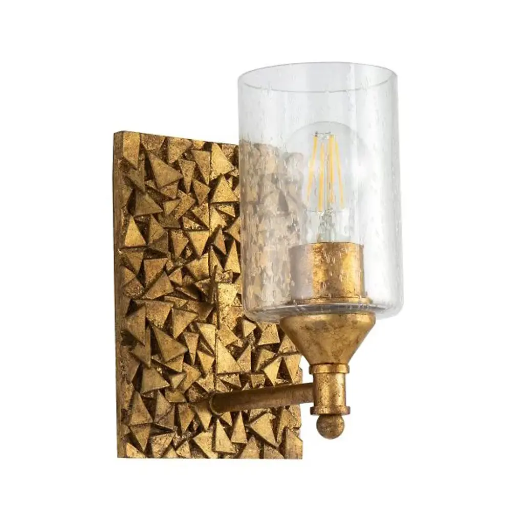 The Mosaic Wall Sconce by Lucas McKearn creates a charming design featuring an ornate rectangular backplate, a curved arm, and clear seeded glass. It makes a bold statement with its elegant style and dramatic art-inspired design. This sconce creates a vintage-like, industrial aesthetic, allowing your rustic wall light to be flexible enough to work in a bathroom or home office.