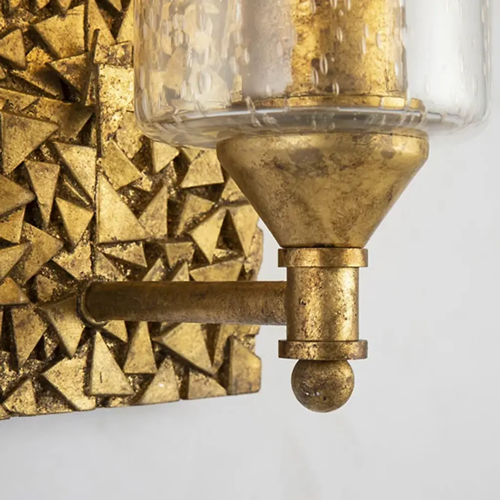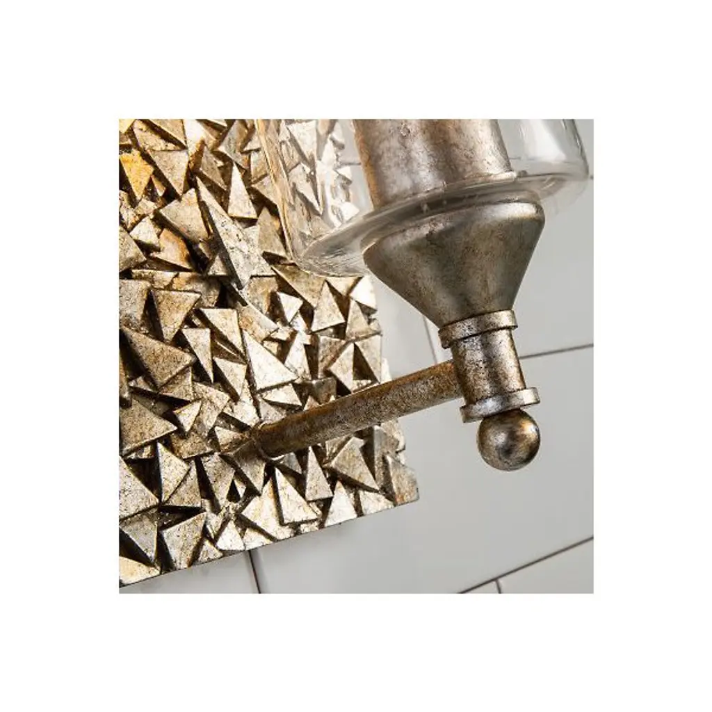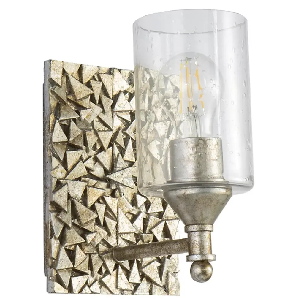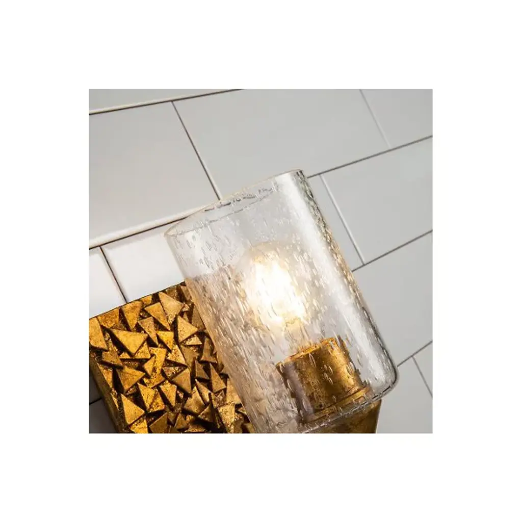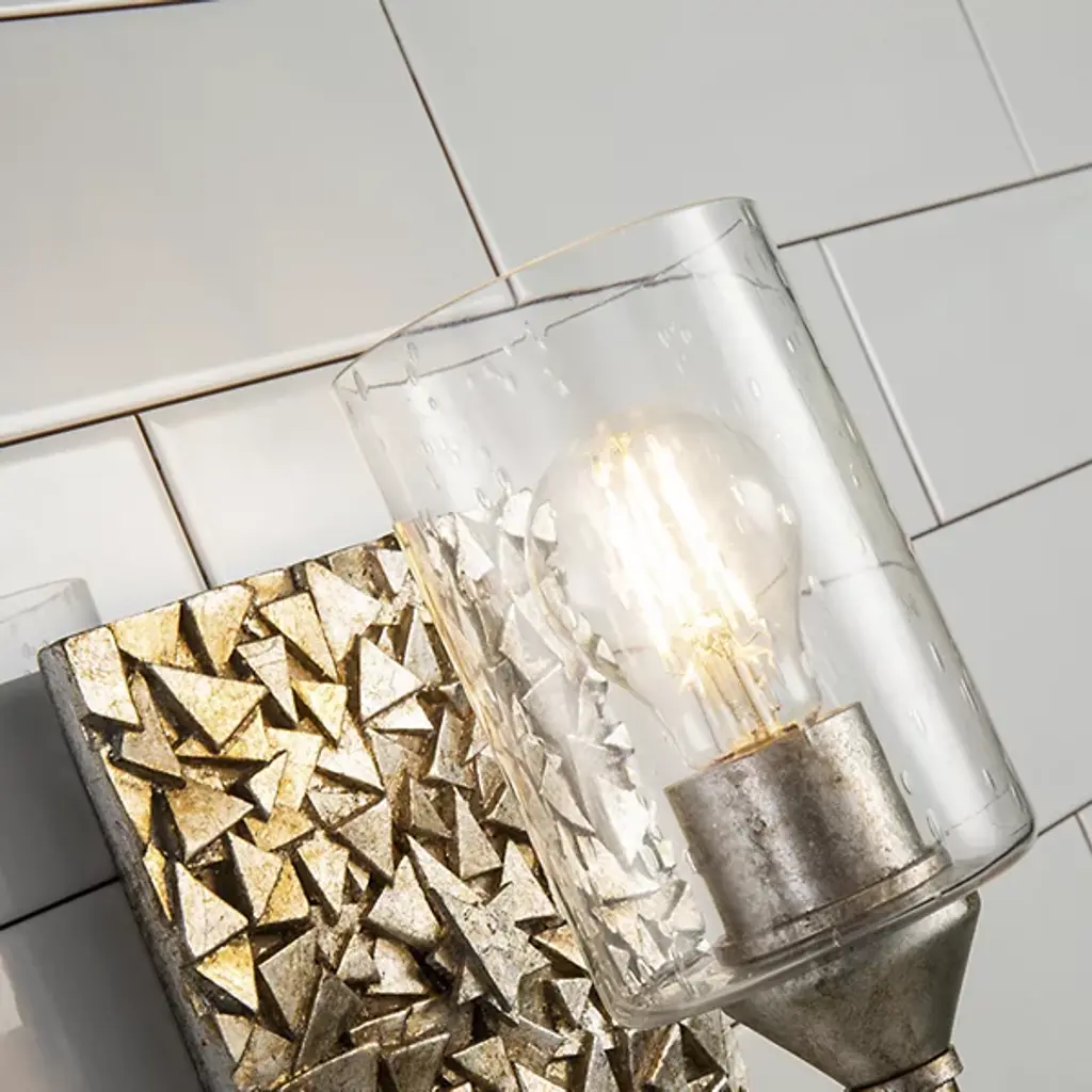 The Mosaic Wall Sconce by Lucas McKearn creates a charming design featuring an ornate rectangular backplate, a curved arm, and clear seeded glass. It makes a bold statement with its elegant style and dramatic art-inspired design. This sconce creates a vintage-like, industrial aesthetic, allowing your rustic wall light to be flexible enough to work in a bathroom or home office.