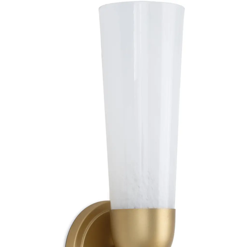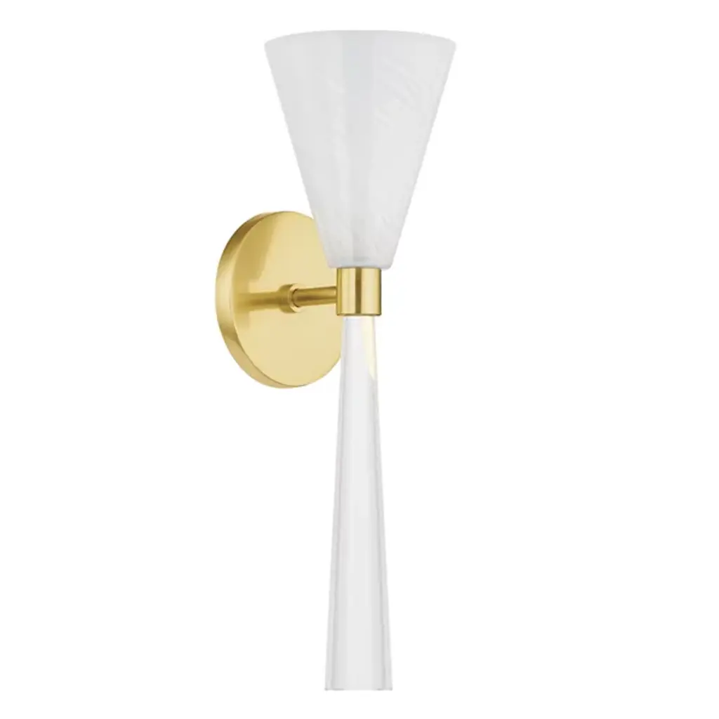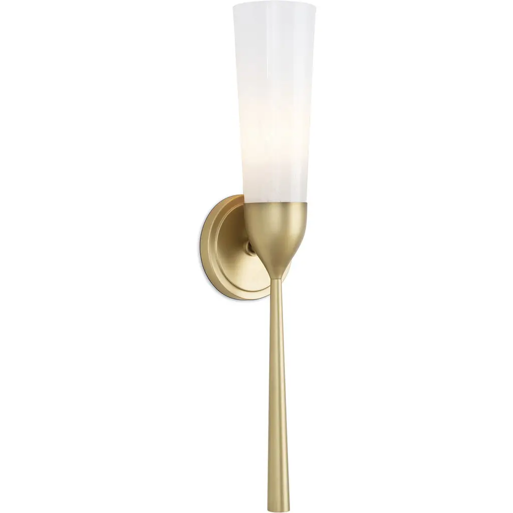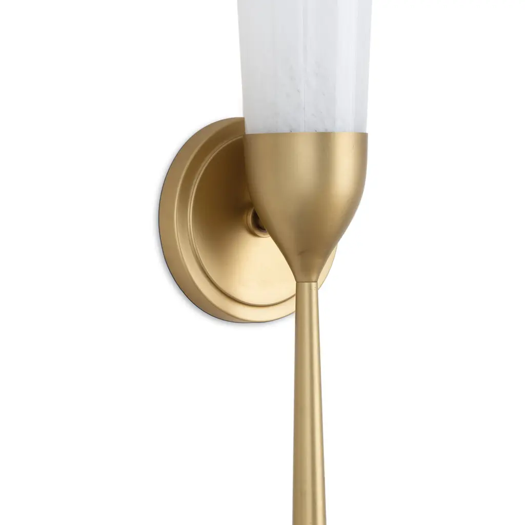 Mousseaux's beautiful blend of art and design is inspired by the delicate form of a blossoming flower. Its singular fluted glass shade, casts a radiant glow, with a natural brass torch base.