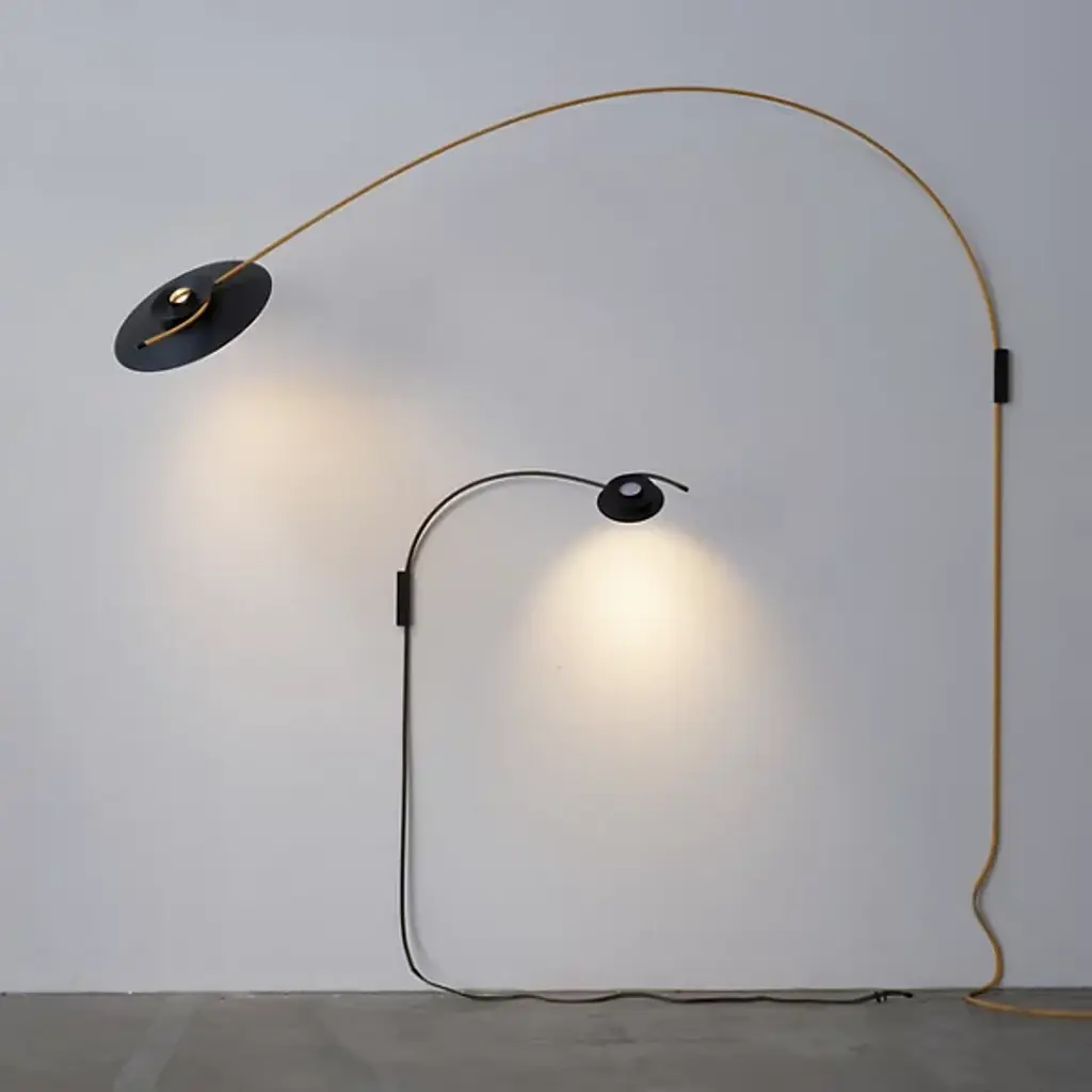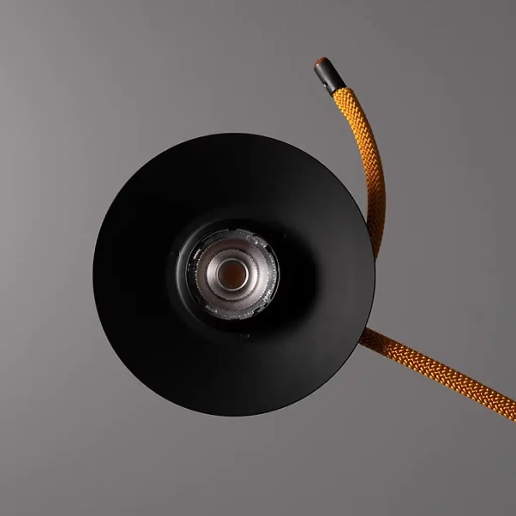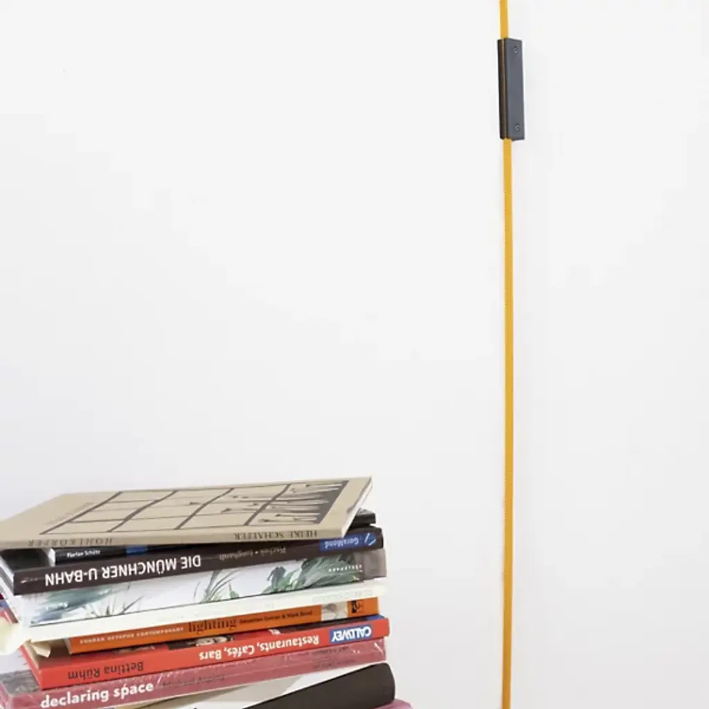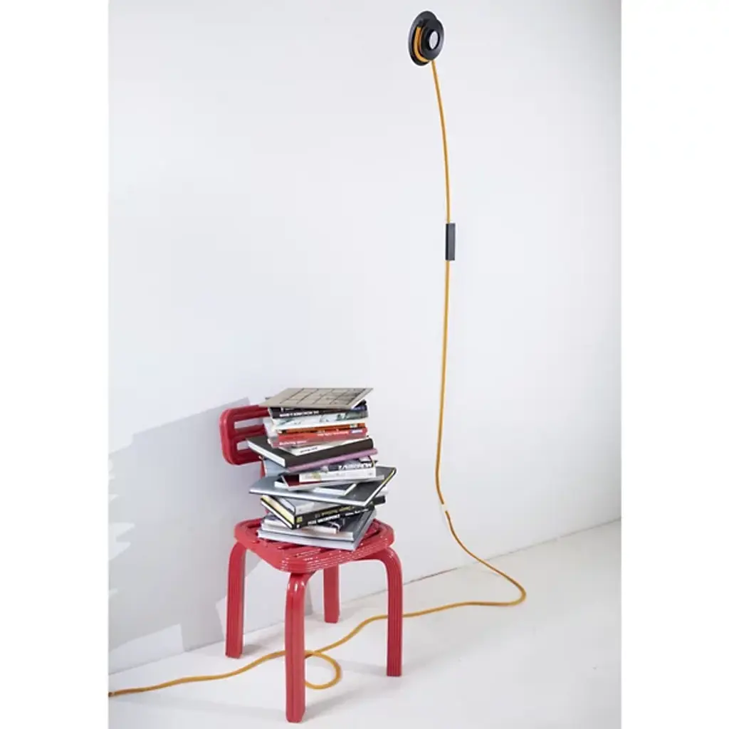 The Ms.Bowjangles LED Wall Sconce from Ingo Maurer adds a charismatic and futuristic presence to indoor walls. Designed by Anna Boch and David Engelhorn, a spool-like lamp head appears to be held up by just a rope, but a slender steel rod inside creates this illusion. The lamp head features an LED light capped by a diffuser, casting soft, warm light throughout the space. With an adjustable light and a dimmer at the end of the “tail,” this product can create both focused and ambient light.