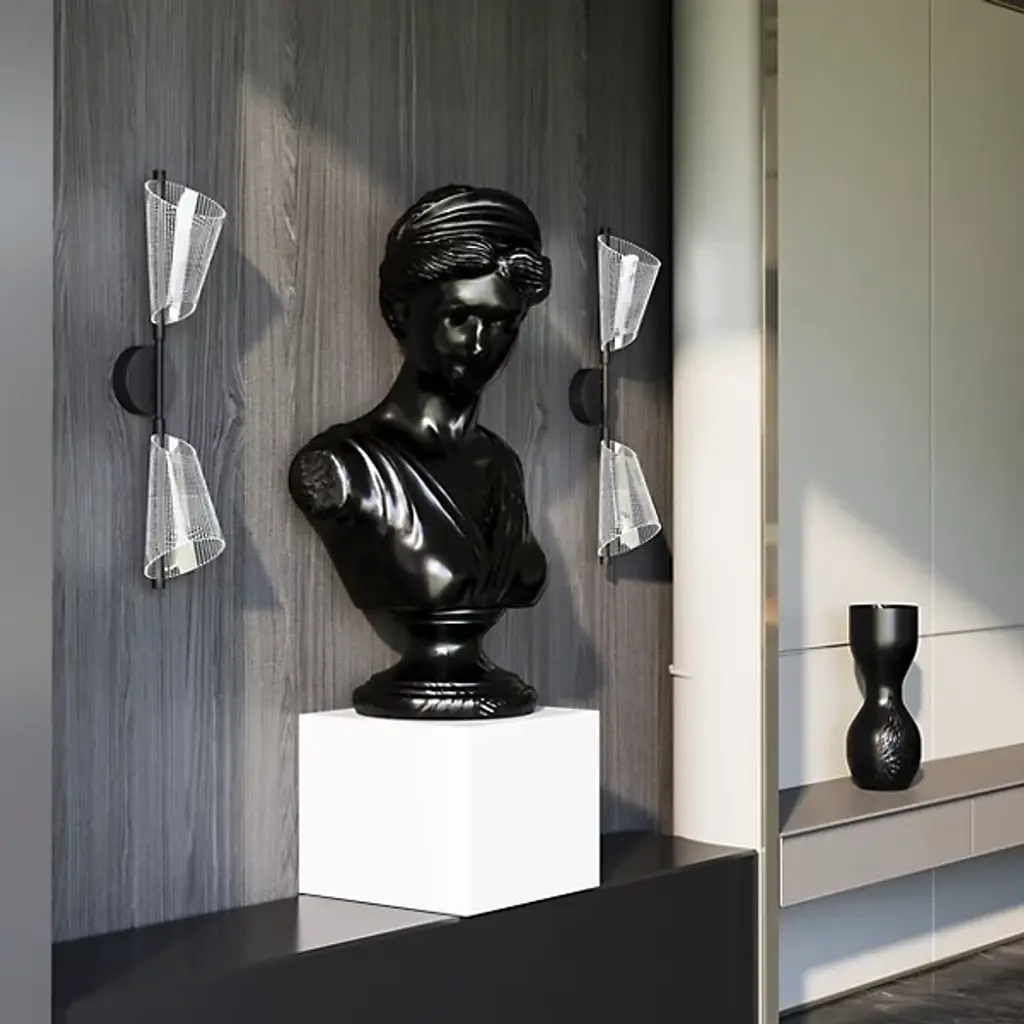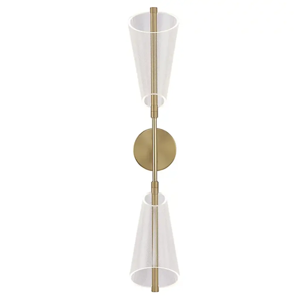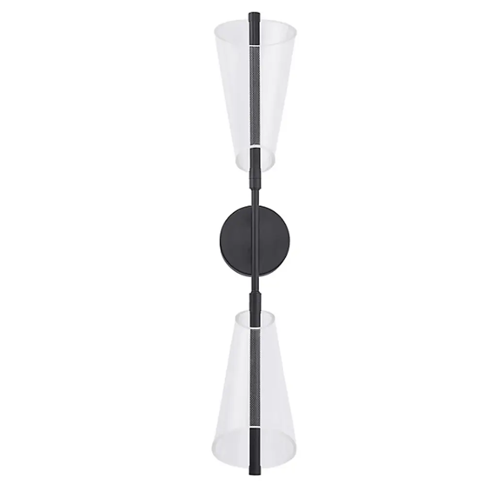 Classic style meets modern interpretation in the Mulberry LED Double Wall Sconce from Kuzco Lighting. Minimal yet decadent forged bodies and seductive edge-lit shades make up this elegant composition of light. Each shade of the Mulberry is crafted with clear etched acrylic, creating the modern glow seen throughout its arrangement.