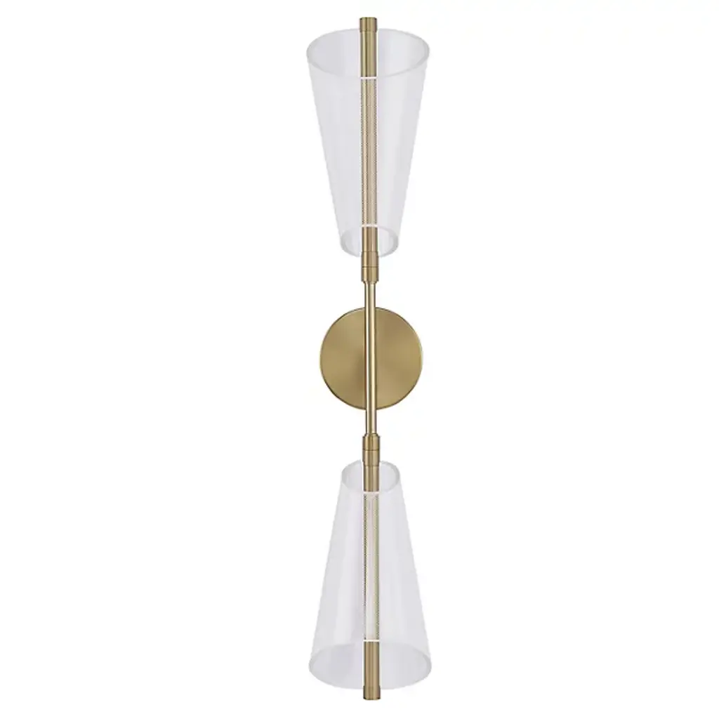 Classic style meets modern interpretation in the Mulberry LED Double Wall Sconce from Kuzco Lighting. Minimal yet decadent forged bodies and seductive edge-lit shades make up this elegant composition of light. Each shade of the Mulberry is crafted with clear etched acrylic, creating the modern glow seen throughout its arrangement.