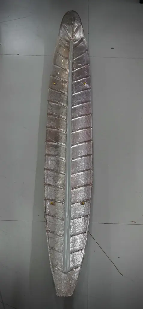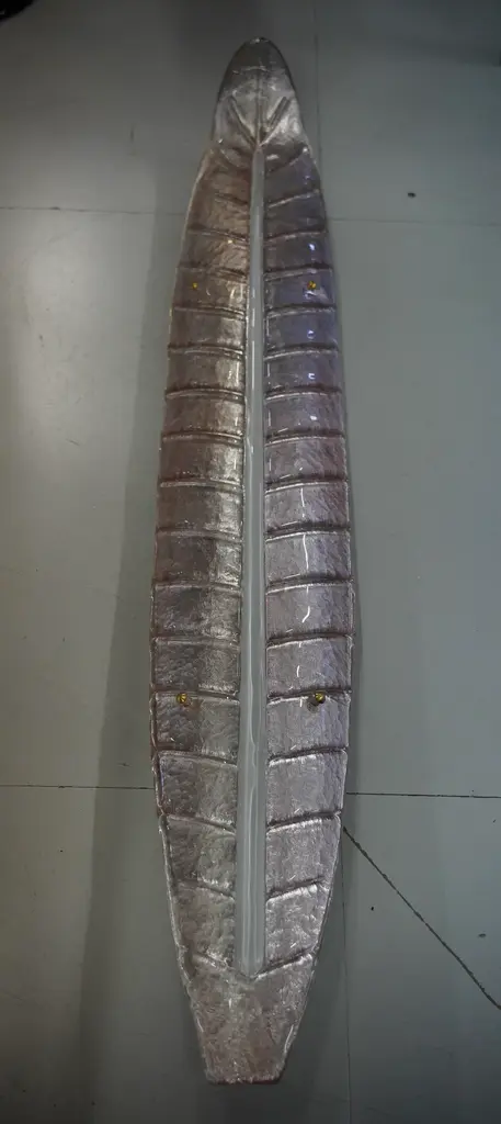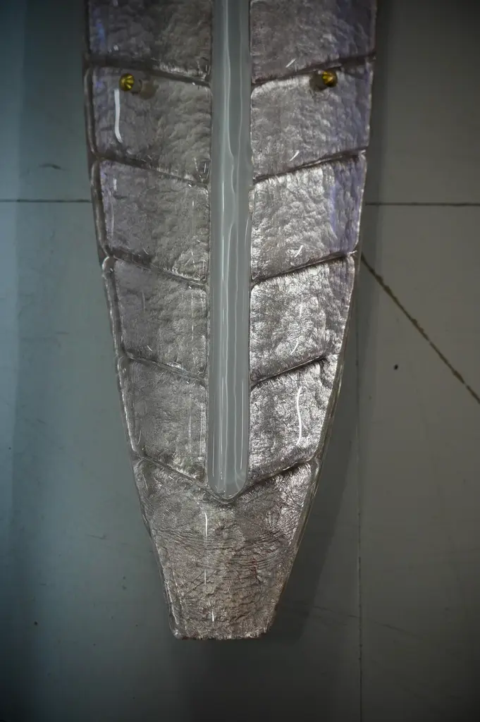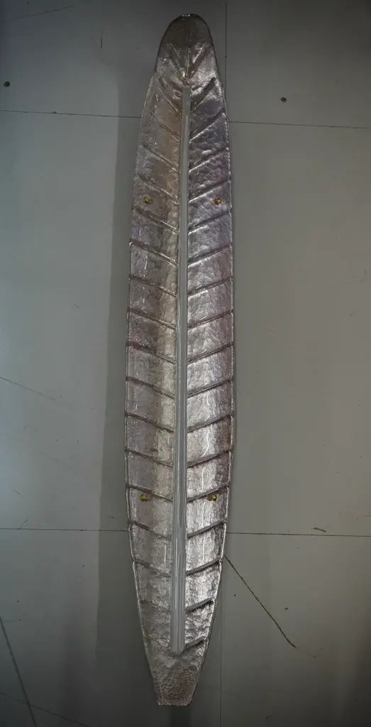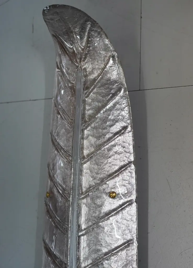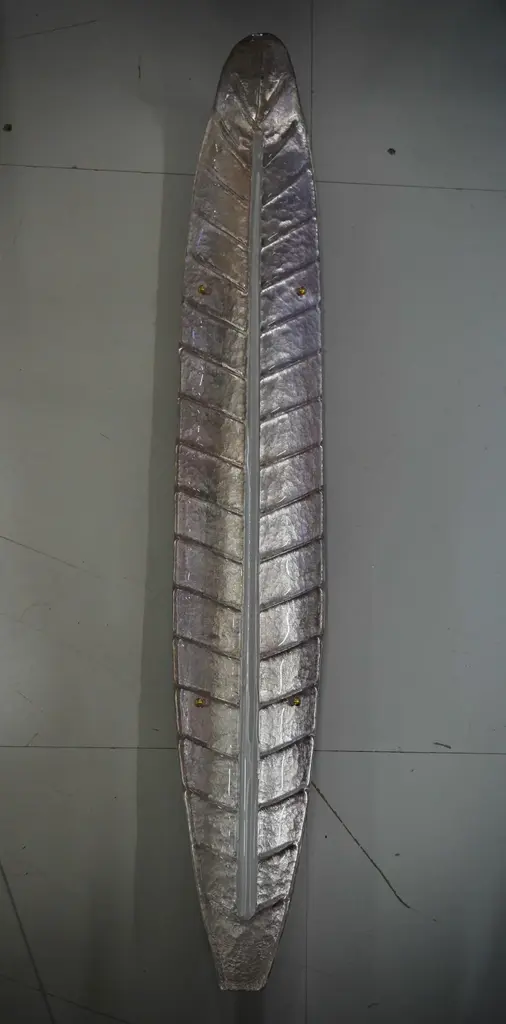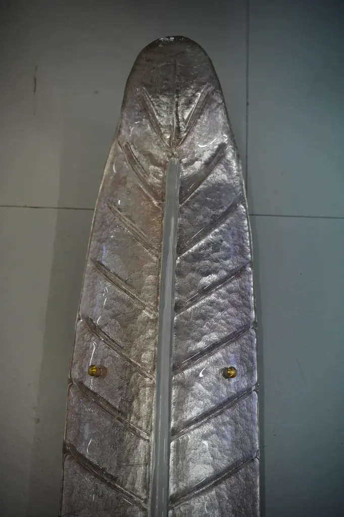 Beautiful design for this leaf-shaped applique, all pink with a vertical white rib. Refinement and class as in the Murano style, one-of-a-kind pieces that always remain precious. The wall light is made of a single piece of Murano glass, almost as if it were a "submerged" Murano. It has the shape of a very well sculpted leaf, with a light horizontal rib and a thicker vertical one, white in color. Its color is very intense and rich, due to the fact that it is colored with pink leaf on the back. Through four screws it is anchored to a white-colored metal structure which structure is then fixed to the wall. Very large and eye-catching, these wall lights will certainly make a good impression attached to any part of your home. European Plug (up to 250V).The wiring of this item may be original and might need replacement, if not specified otherwise.