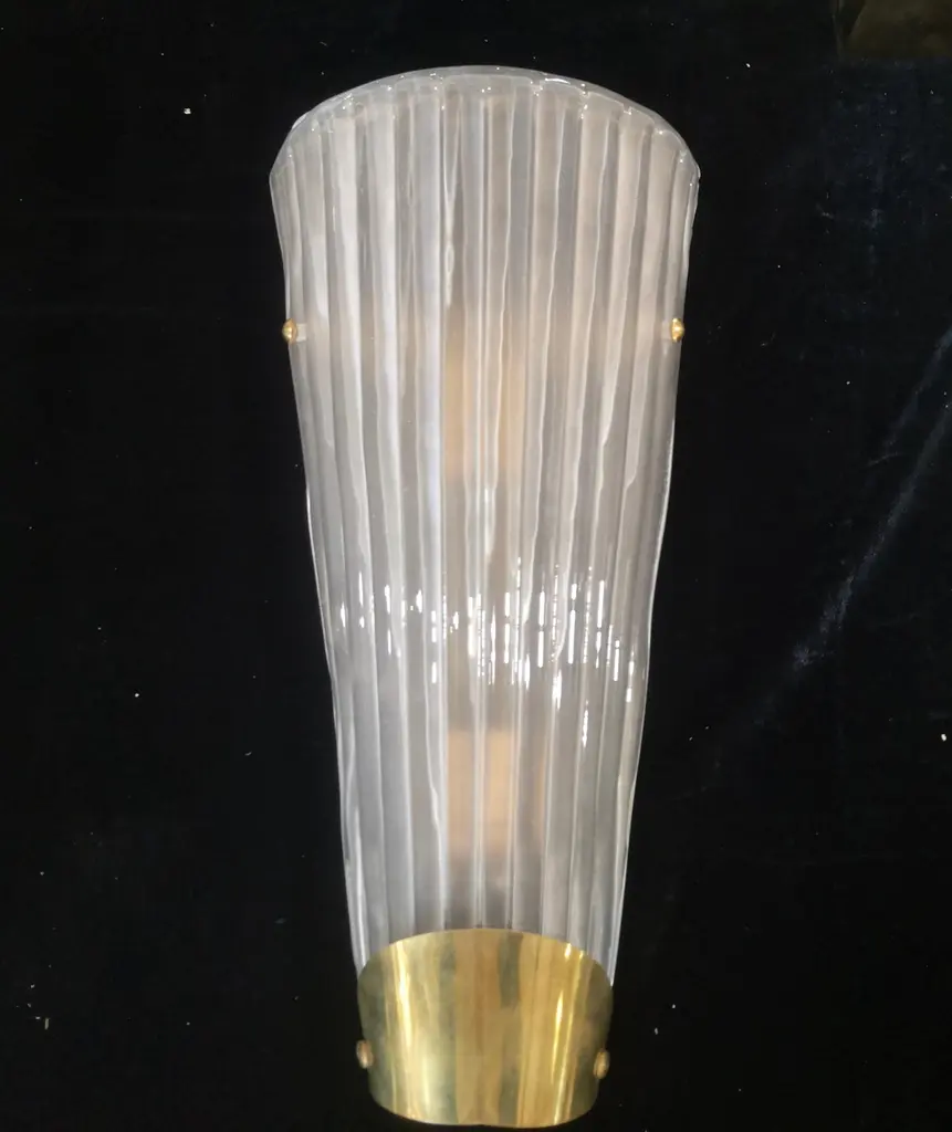 Murano Art Glass White Color And Brass Wall Light And Sconces, 2000