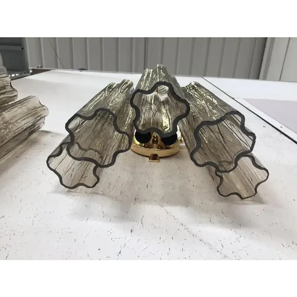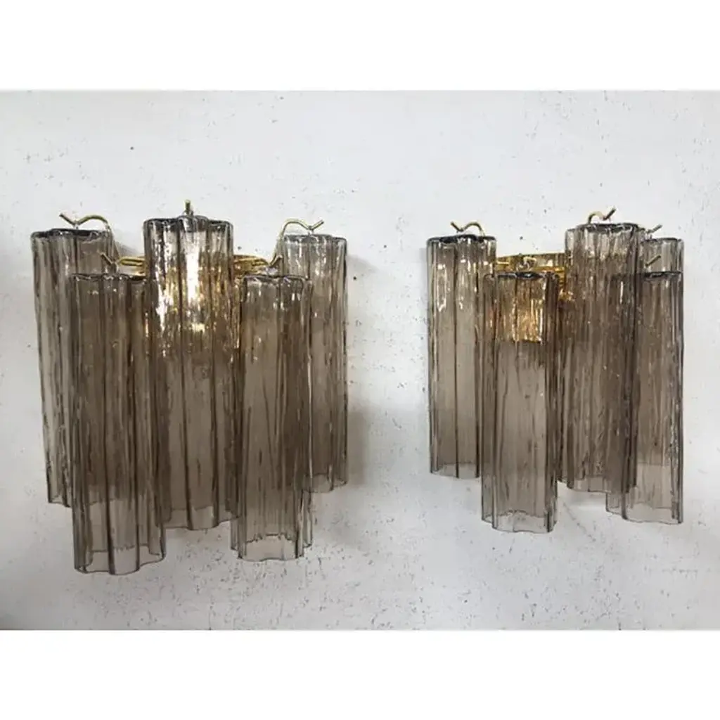 Murano Fume Color Glass Tronchi Wall Sconces By Simoeng, Set Of 2